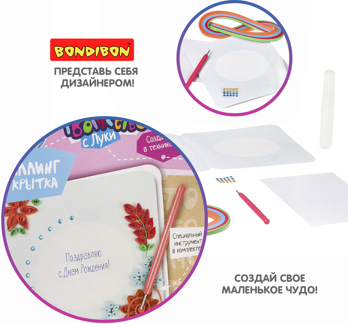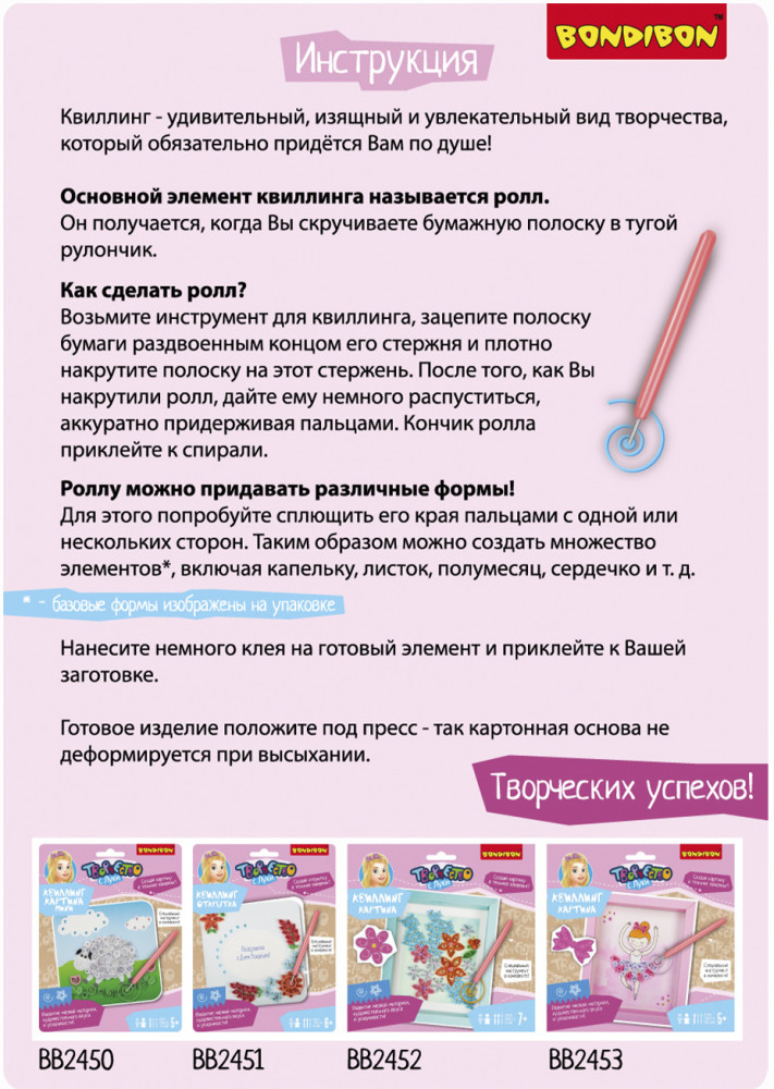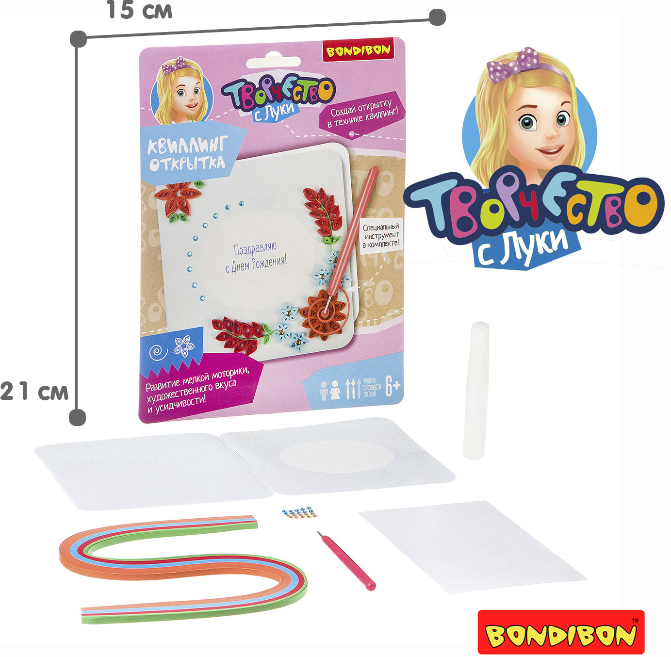 Bondibon Набор для квиллинга «Цветы»В данный момент этот товар отсутствует в продаже. Возможно, у нас найдется аналогичный или похожий товар здесь. Серия: Творчество с Луки Квиллинг или бумагокручение — увлекательный вид творчества по изготовлению плоских или объёмных композиций из скрученных в спиральки длинных и узких полосок бумаги. С помощью специального инструмента для кручения (в комплекте) ваш ребенок создаст замечательную открытку, состоящую из различных элементов и форм. При скручивании и склеивании мелких деталей развивается внимательность и аккуратность. |