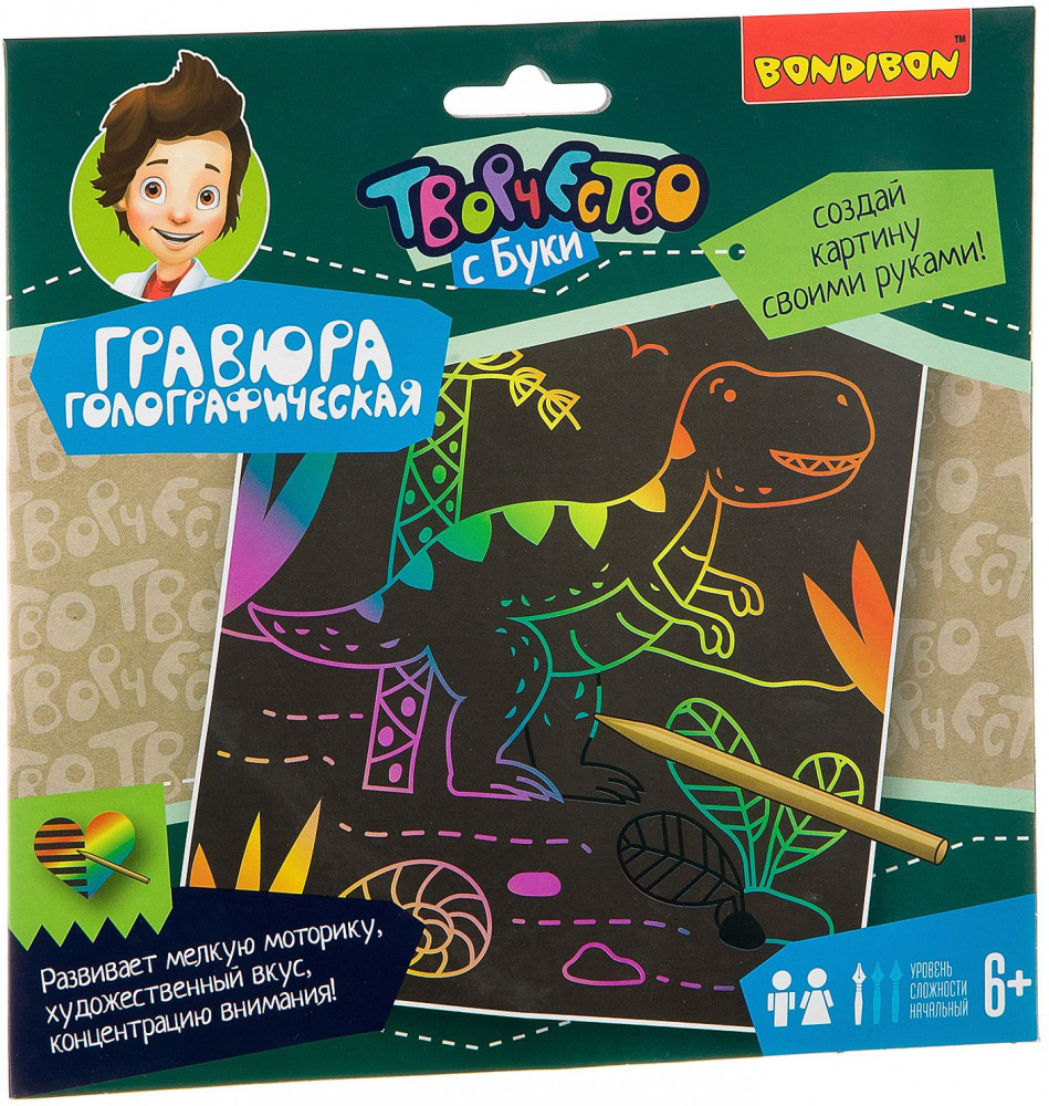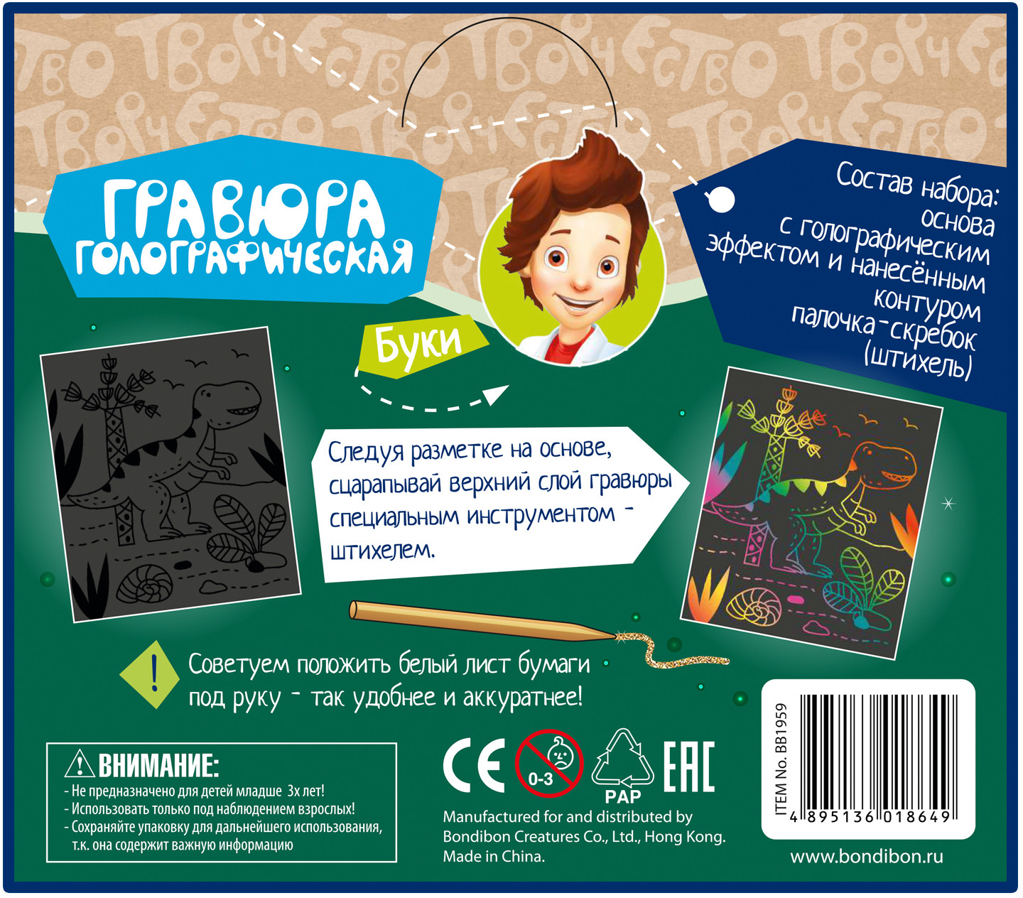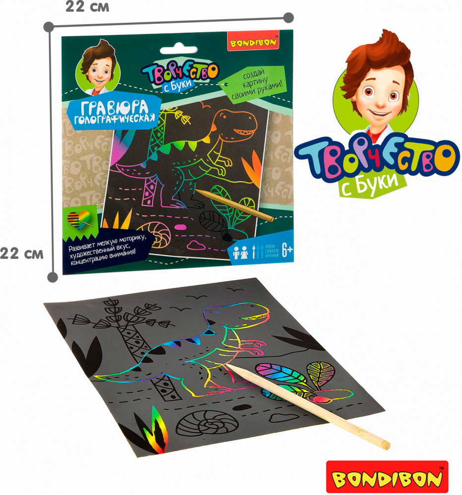 Bondibon Гравюра голографическая «Динозавр»-30%