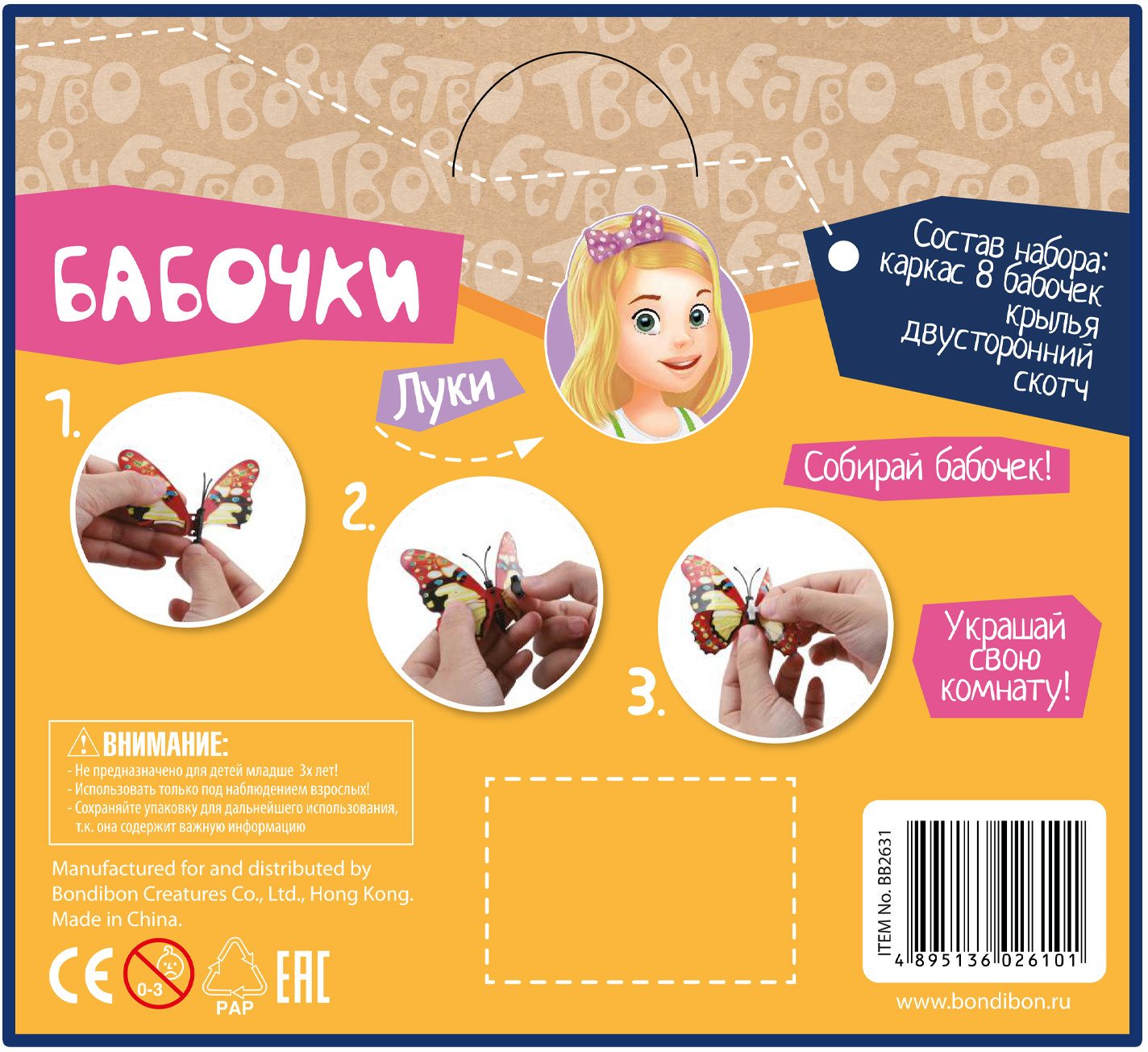Bondibon Набор для творчества «Бабочки»классные бабочки яркие цвета удобная сборка крепкие глянцевые В данный момент этот товар отсутствует в продаже. Возможно, у нас найдется аналогичный или похожий товар здесь. Серия: Творчество с Луки Хотите, чтобы лето в комнате никогда не заканчивалось? С помощью этого набора ребенок самостоятельно сделает фигурки бабочек и сможет украсить ими свою комнату. Набор для творчества «Бабочки» ТМ Bondibon способствуют развитию творческого мышления, усидчивости и аккуратности. |