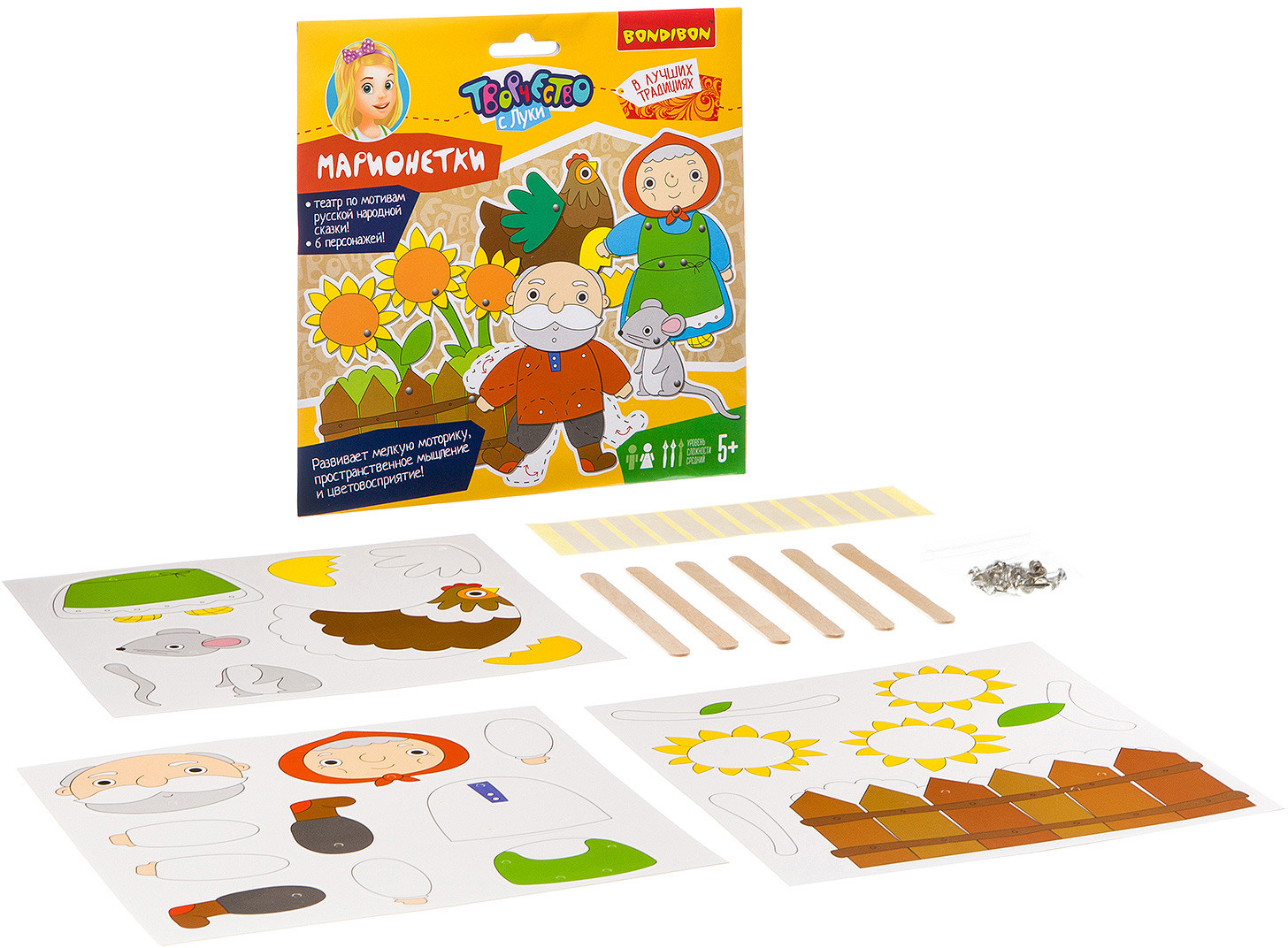 Bondibon Набор для творчества «Марионетки. Русские народные сказки»В данный момент этот товар отсутствует в продаже. Возможно, у нас найдется аналогичный или похожий товар здесь. Серия: Творчество с Луки Это оригинальный набор для детского творчества и увлекательная игра одновременно! Из разнообразных ярких деталей и разноцветных кнопок ваш ребенок с огромным удовольствием составит интересных куколок! Всё, что нужно сделать, чтобы получить свой театр марионеток, это раскрасить и снять с подложки детали, скрепить детали брадсами и прикрепить палочку к обороту фигурки стикерами. Веселого представления! |