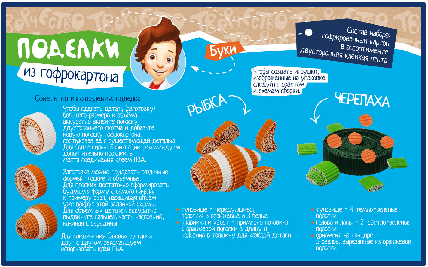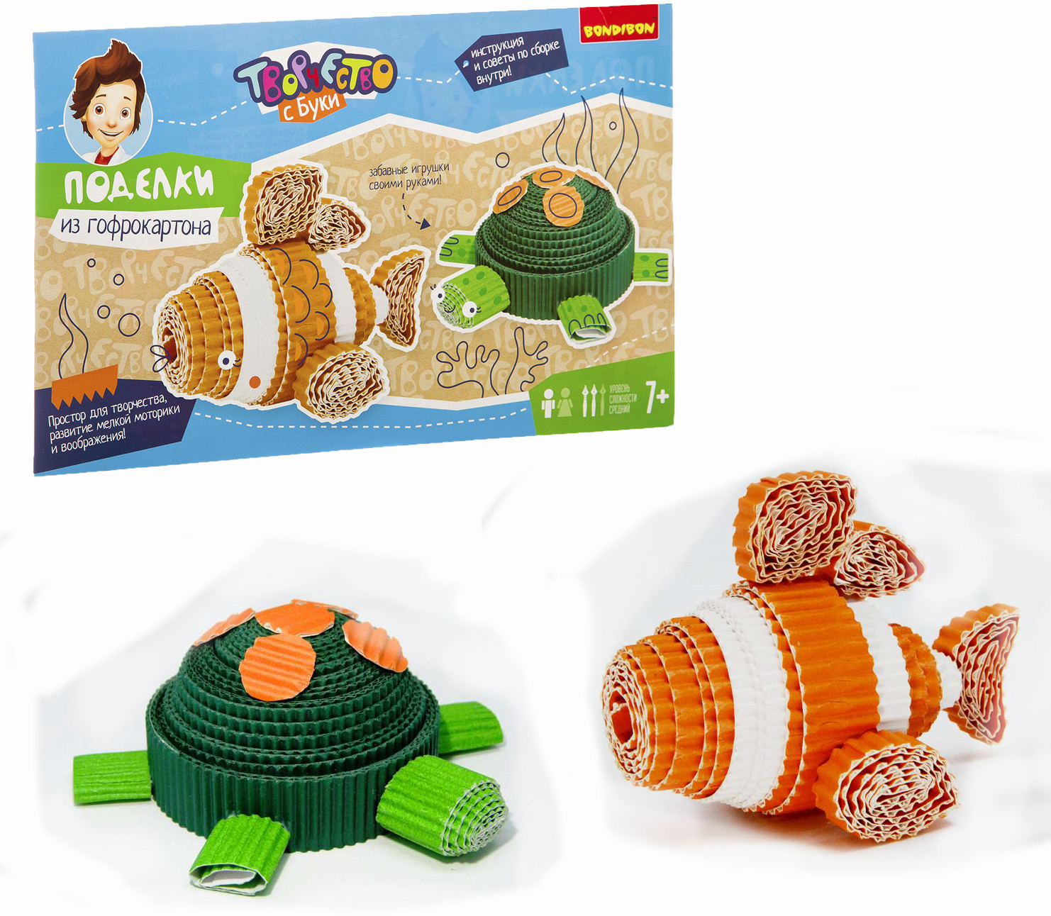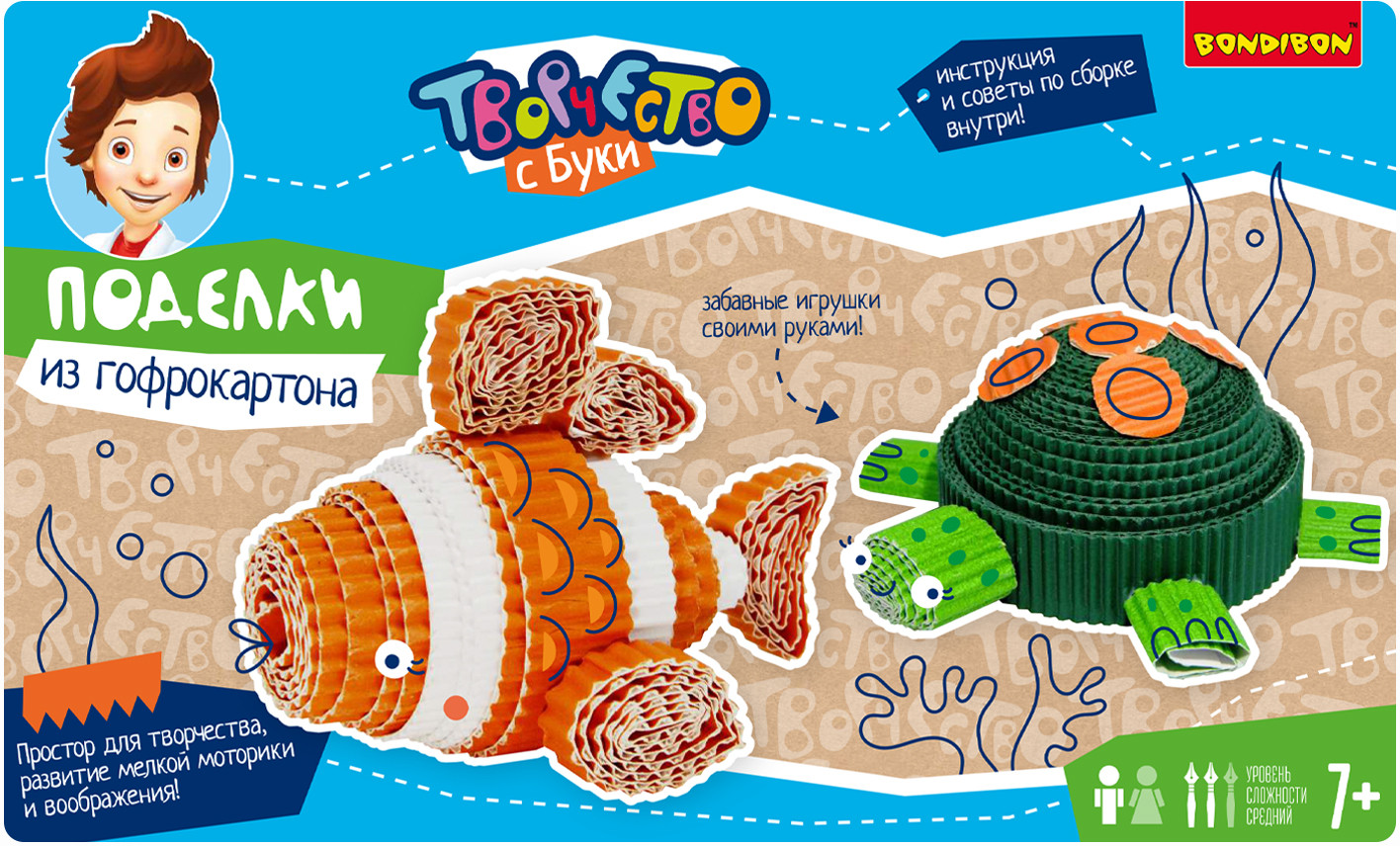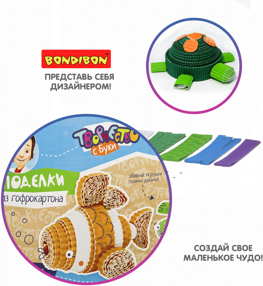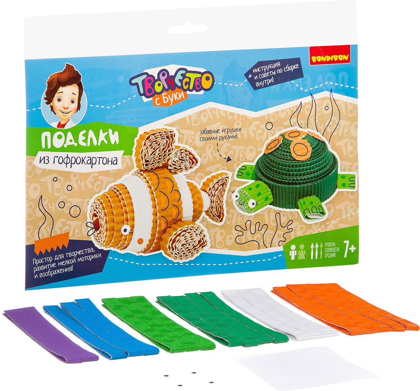 Bondibon Набор для творчества «Черепашка и рыбка»В данный момент этот товар отсутствует в продаже. Возможно, у нас найдется аналогичный или похожий товар здесь. Серия: Творчество с Буки Хотите увлечь малыша новым видом творчества? Предложите ему смастерить поделки из гофрированного картона. Своими руками вы сможете превратить этот необычный по фактуре и внешнему виду материал в забавных персонажей. В наборе Вы найдете уже подготовленный к работе гофрокартон, порезанный на полоски и подробное описание по созданию игрушек, изображенных на упаковке. А также Вы сможете создать игрушки по собственной задумке — картона хватит и на них. Дополнительно понадобится клей ПВА. |