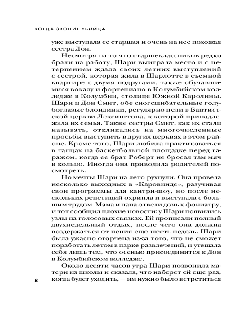 31 мая 1985 года, за два дня до школьного выпускного, юная Шари Смит была похищена возле собственного дома в Южной Каролине. Все указывало на то, что совершено убийство на сексуальной почве. Но самое необычное и пугающее — маньяк стал звонить семье убитой девушки, упиваясь властью и манипуляциями над безутешными женщинами — матерью и старшей сестрой Дон, — а также прислал им прощальное письмо Шари и указал, где искать ее тело.