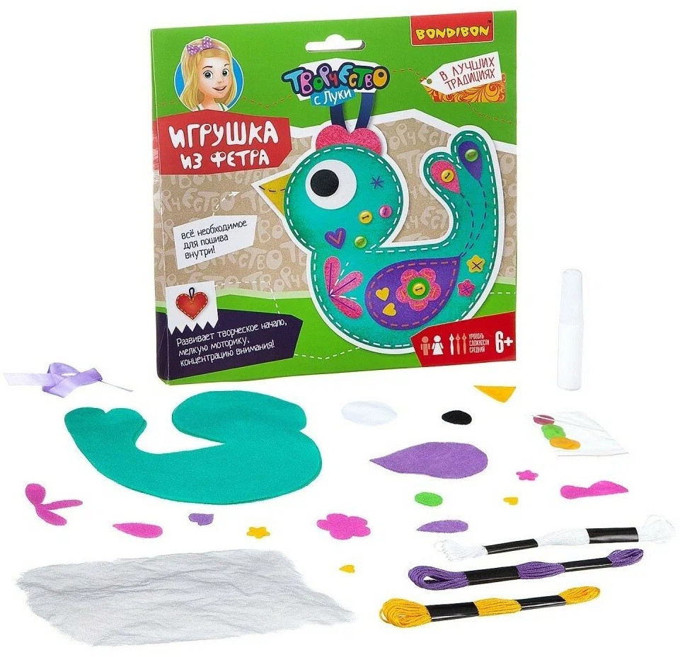 Bondibon Набор для творчества «Птичка»В данный момент этот товар отсутствует в продаже. Возможно, у нас найдется аналогичный или похожий товар здесь. Серия: Творчество с Луки С этим набором ты сможешь сшить замечательную игрушку из мягкого фетра. Его просто шить вручную, а готовое изделие можно немного растянуть для придания ему необходимой формы. Фетр, из которого мы будем шить игрушки, имеет очень яркие и сочные цвета. Такую игрушку можно повесть на новогоднюю елку, украсить интерьер, подарить или устроить кукольный театр! Творите и развивайтесь вместе с Bondibon! |