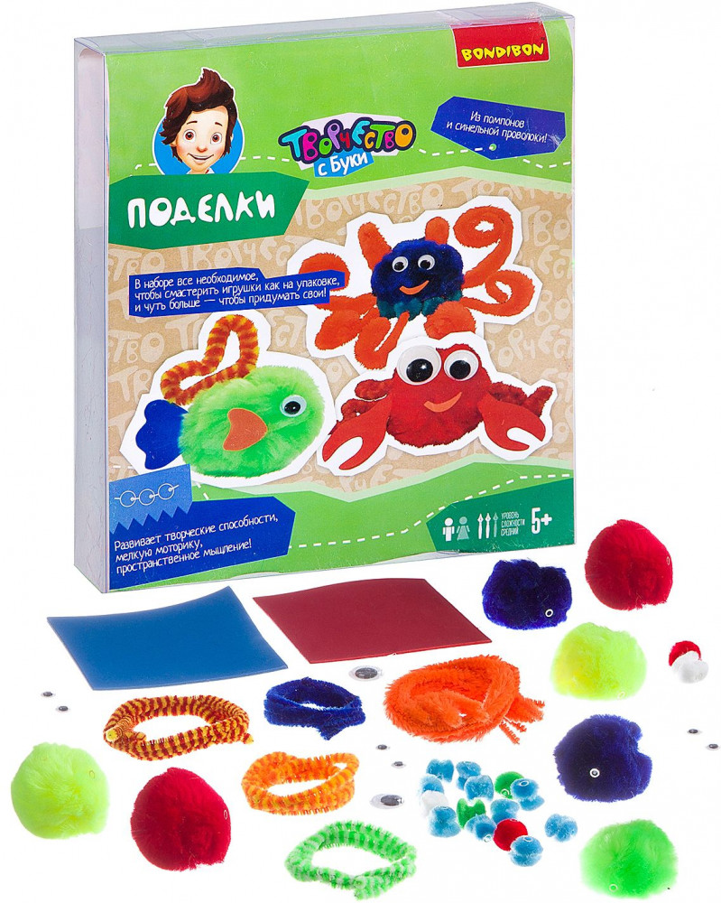 Bondibon Набор для творчества «Водный мир»В данный момент этот товар отсутствует в продаже. Возможно, у нас найдется аналогичный или похожий товар здесь. Серия: Творчество с Буки Яркие помпончики, пушистая проволока, стразы и прочие элементы украшения, а также инструкция помогут создать забавные поделки своими руками! В наборе все необходимое и немного больше, чтобы создать поделки, изображенные на упаковке, а также придумать свои! |