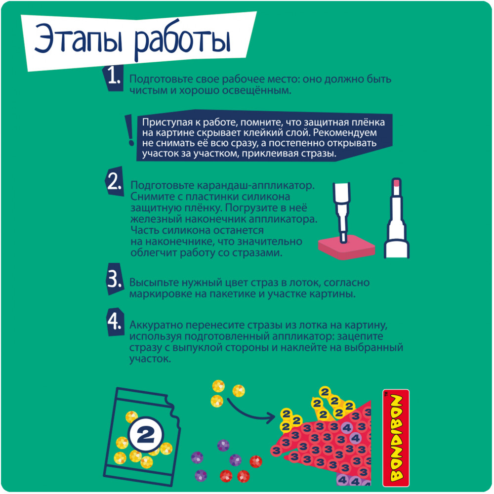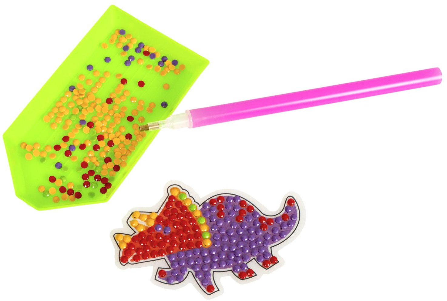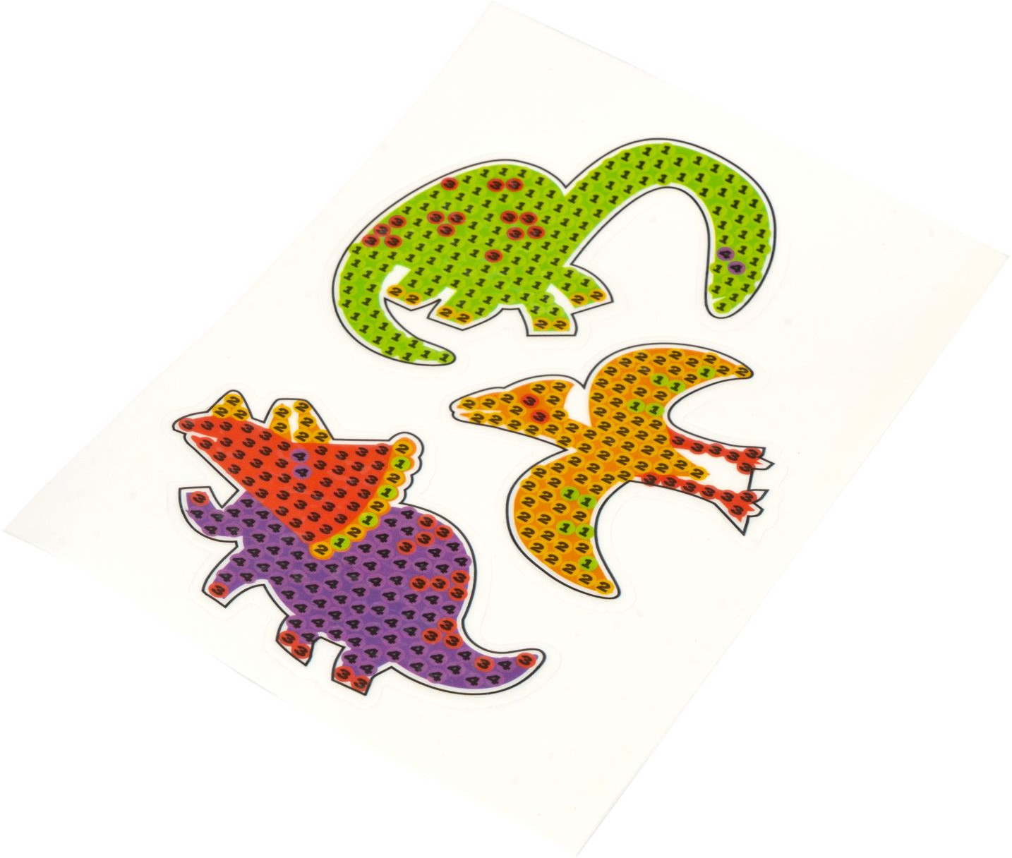 Переносите стразы на выбранный участок картины, используя аппликатор. У Вас получатся 3 крупных стикера с динозаврами. Собери свой комплект наклеек и укрась ими дневник, телефон, любимый блокнот и многое другое.