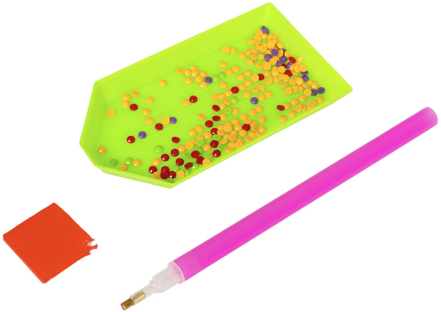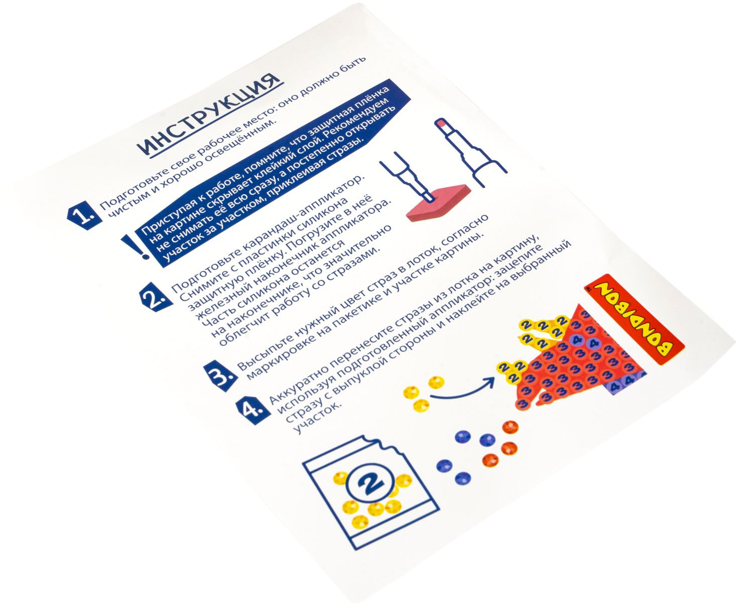 В наборе: цветные основы, набор мозаики и инструментов, инструкция.