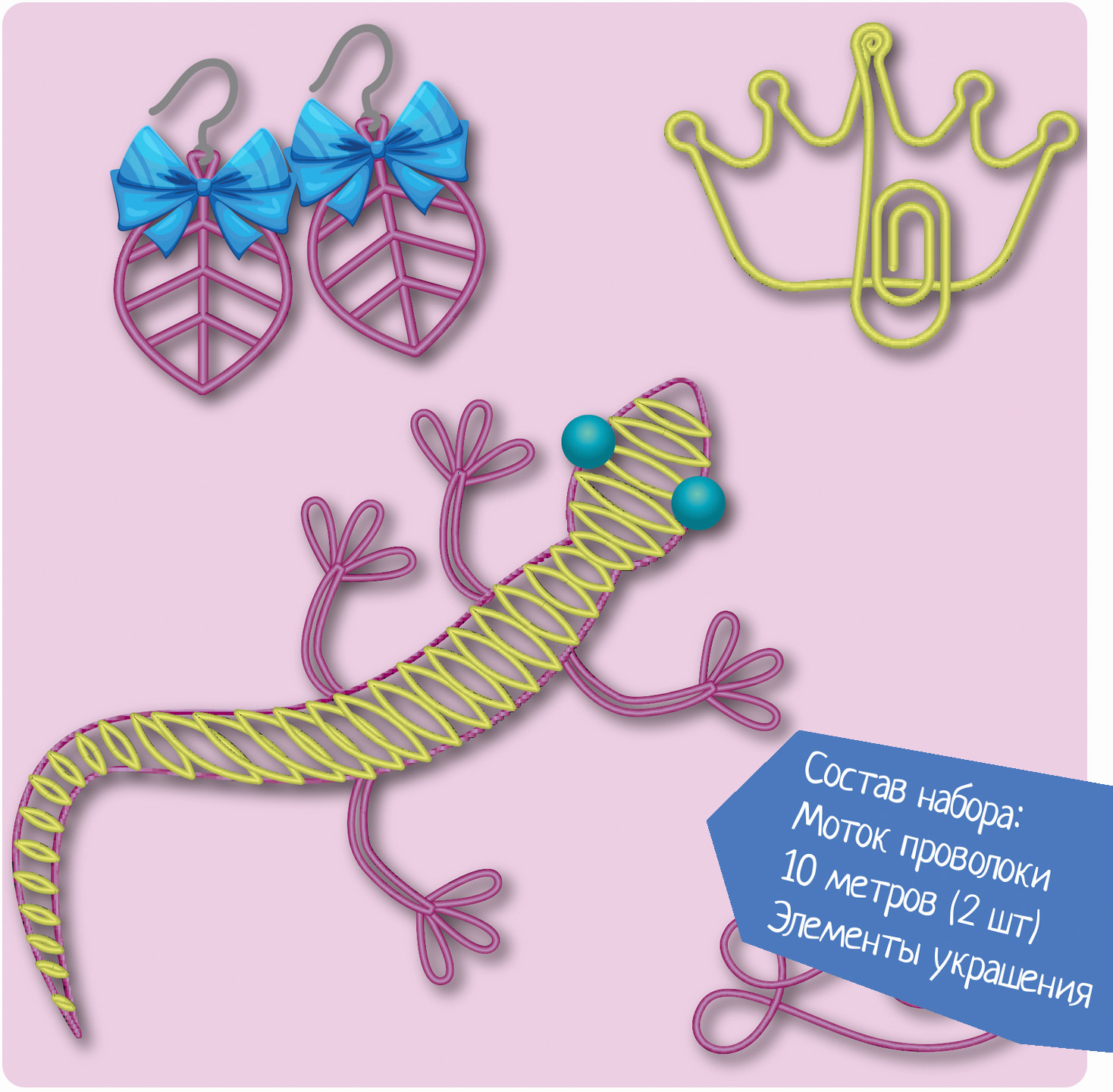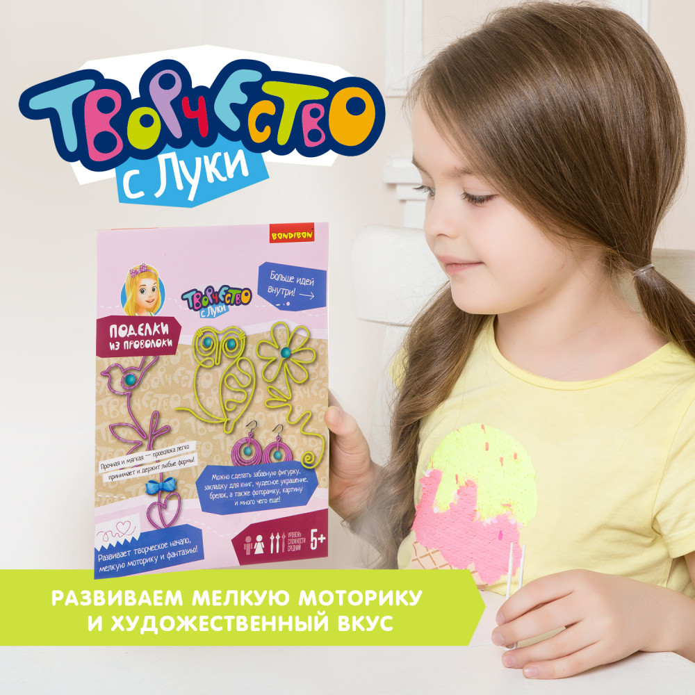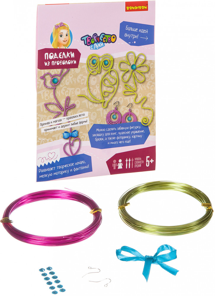 Bondibon Набор для творчества «Поделки из проволоки»В данный момент этот товар отсутствует в продаже. Возможно, у нас найдется аналогичный или похожий товар здесь. Серия: Творчество с Луки Проволока — один из самых необычных материалов для творчества. Из неё можно сделать практически всё, от простых закладок и до сложных объёмных фигур. Поэкспериментируйте в этом нестандартном виде творчества. |