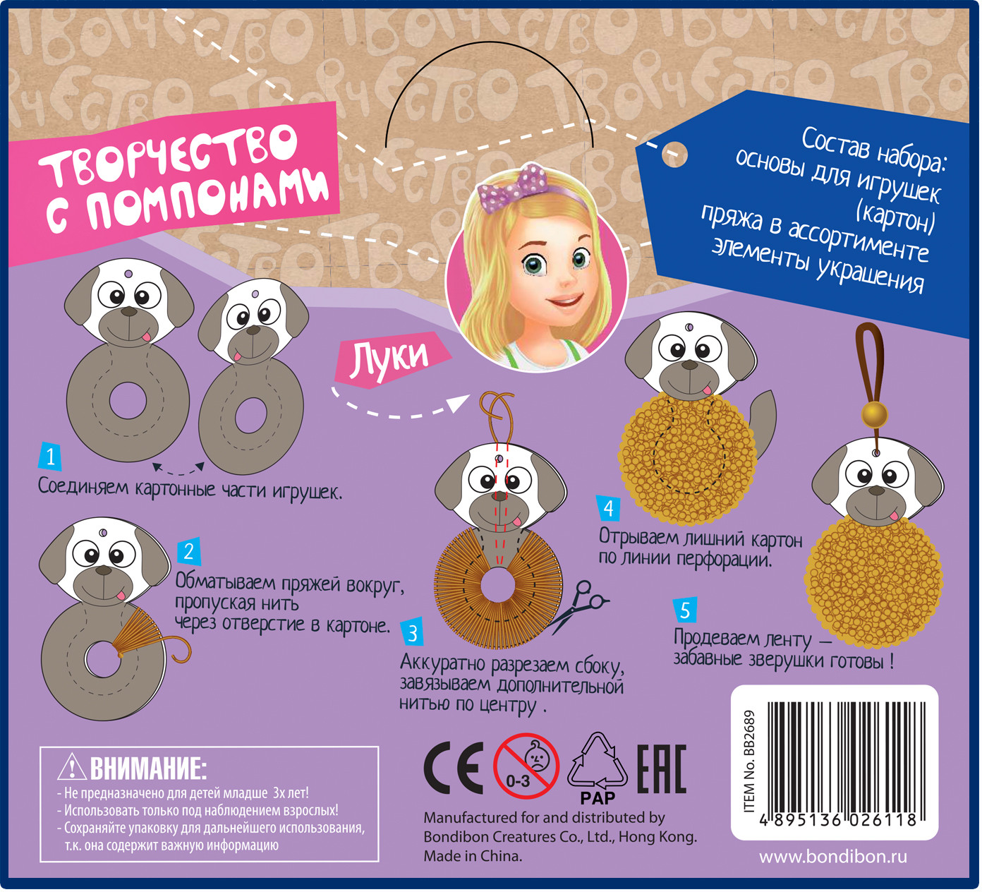 Bondibon Набор для творчества «Забавные зверушки»В данный момент этот товар отсутствует в продаже. Возможно, у нас найдется аналогичный или похожий товар здесь. Серия: Творчество с Луки В наборе есть всё необходимое для создания забавных фигурок животных: цветная пряжа, картонные основы для помпонов, элементы украшений и инструкция. Работа с набором развивает мелкую моторику, творческие способности, пространственное мышление. |