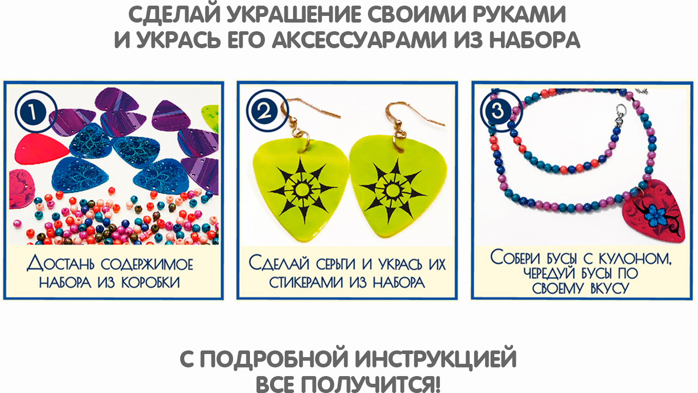 Bondibon Набор для создания украшений «Украшения из медиаторов»В данный момент этот товар отсутствует в продаже. Возможно, у нас найдется аналогичный или похожий товар здесь. Серия: Eva Moda Создавая аксессуары своими руками, дети не только подчёркивают собственную индивидуальность, но и развивают воображение и творческие способности. Этот набор от «Бондибон» позволит сделать самые дерзкие и рок-н-ролльные украшения! Обычные медиаторы для игры на гитаре можно превратить в стильные серьги, браслет и колье! В наборе есть всё необходимое для создания 4 видов украшений, а также наклейки для декорирования самих медиаторов. |