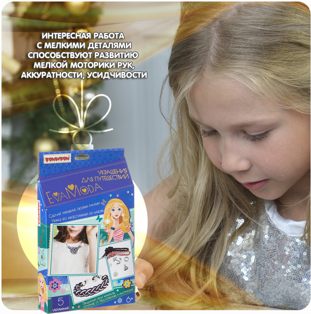 Bondibon Набор для создания украшений «Украшения для путешествий»В данный момент этот товар отсутствует в продаже. Возможно, у нас найдется аналогичный или похожий товар здесь. Серия: Eva Moda Создавая аксессуары своими руками, дети не только подчёркивают собственную индивидуальность, но и развивают воображение и творческие способности. Набор для создания пяти стильных украшений в морском стиле! В комплекте фурнитура для сережек, браслета и колье, а также подвески, инструкция и прочие аксессуары! |