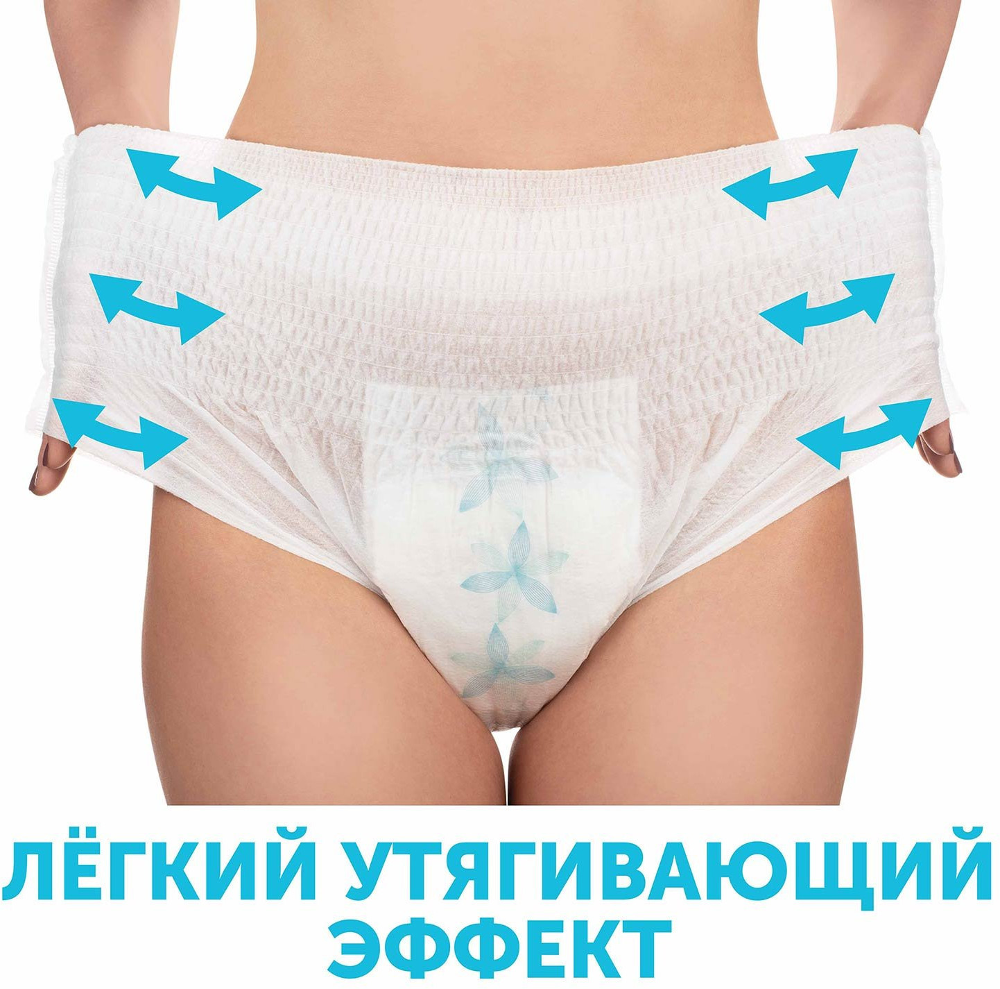 Одноразовые впитывающие трусы идеально садятся по фигуре, незаметны под тонкими лосинами или ночной пижамой. Они подходят для женщин с обильными менструальными выделениями, дают гарантированную защиту белья и психологический комфорт. Перед использованием трусиков рекомендуется встряхивать их, это активизирует впитывающие свойства абсорбента.