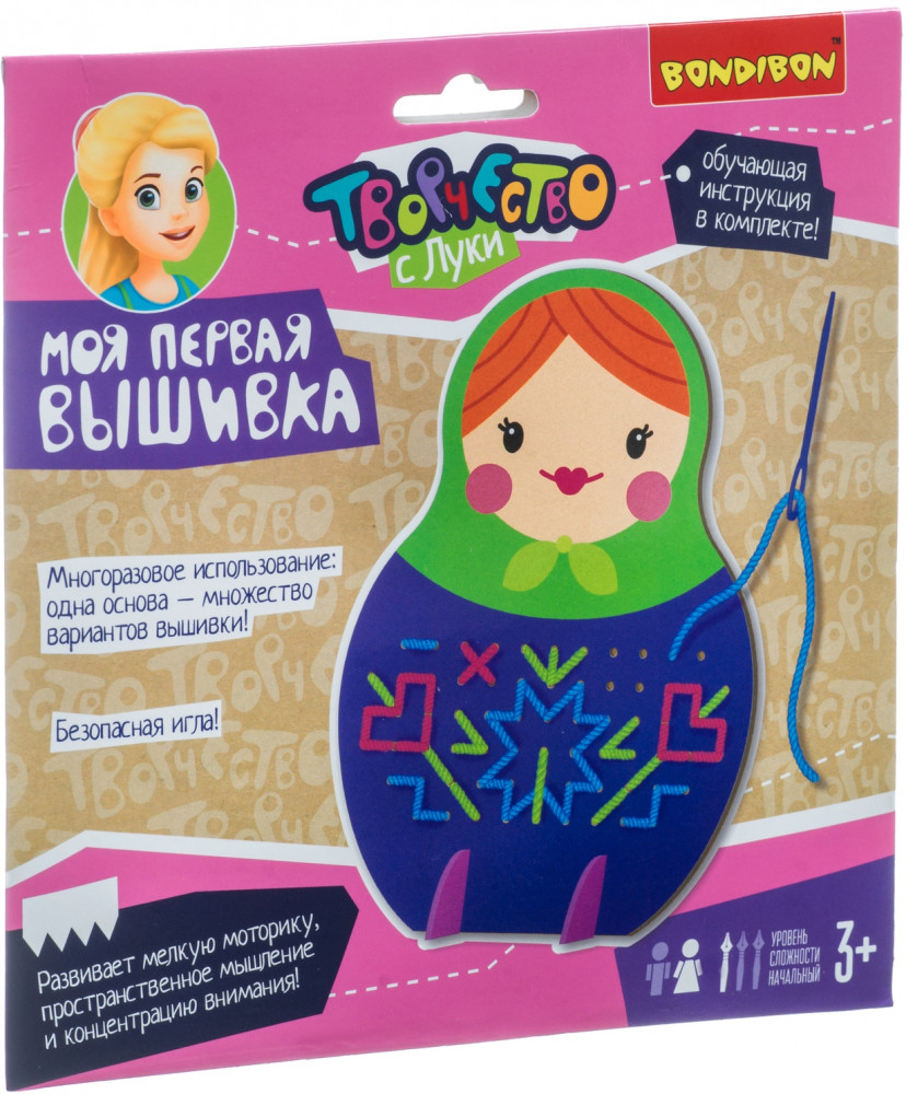 Bondibon Набор для творчества «Моя первая вышивка. Матрешка»В данный момент этот товар отсутствует в продаже. Возможно, у нас найдется аналогичный или похожий товар здесь. Серия: Творчество с Луки Прививать интерес к рукоделию можно уже в три года! В этом наборе от Bondibon вместо канвы — яркие предметы из прочного материала, толстые разноцветные нити и безопасная пластиковая игла, играя с которыми, ребенок сможет развить пространственное мышление (ведь ниточка, следуя за иголкой, то прячется, то появляется), мелкую моторику, цветовосприятие, речевые навыки. Набор для творчества Bondibon «Матршка» поможет научиться делать разные виды стежков. |