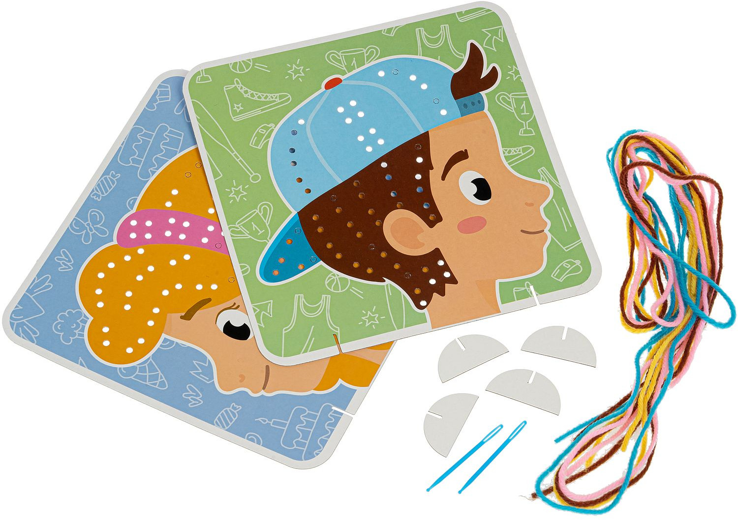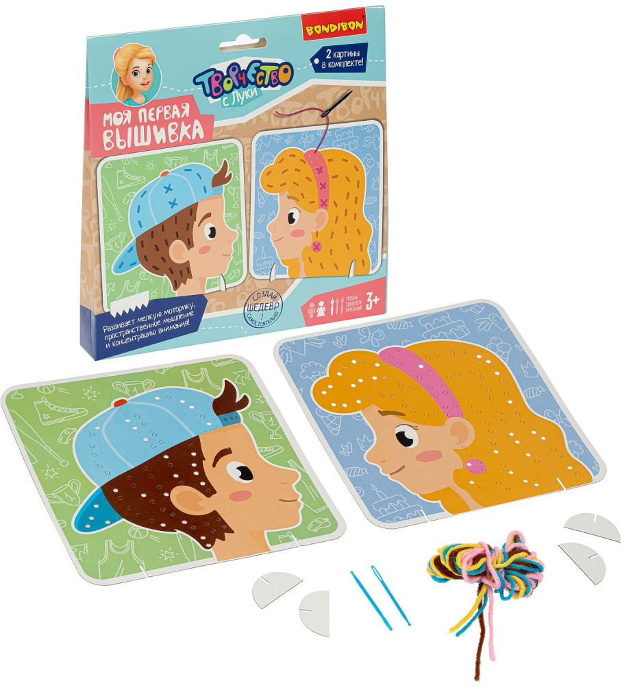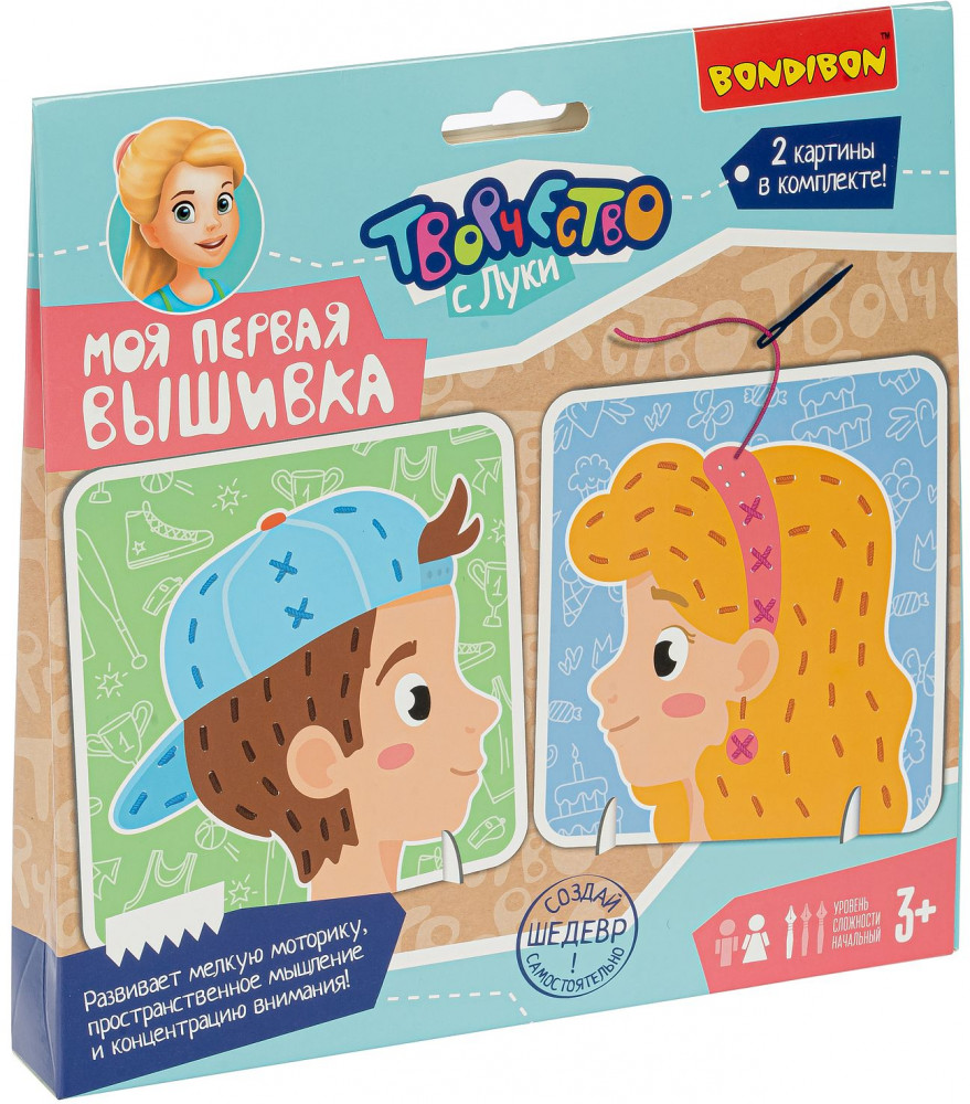 Bondibon Набор для творчества «Моя первая вышивка. Портреты»В данный момент этот товар отсутствует в продаже. Возможно, у нас найдется аналогичный или похожий товар здесь. Серия: Творчество с Луки Прививать интерес к рукоделию можно уже в три года! В наборе для творчества вместо канвы — плотный картон с перфорацией, прочные разноцветные нити и безопасная пластиковая игла, управляя которой, ребенок сможет развить пространственное мышление (ведь ниточка, следуя за иголкой, то прячется, то появляется), мелкую моторику, цветовосприятие. |