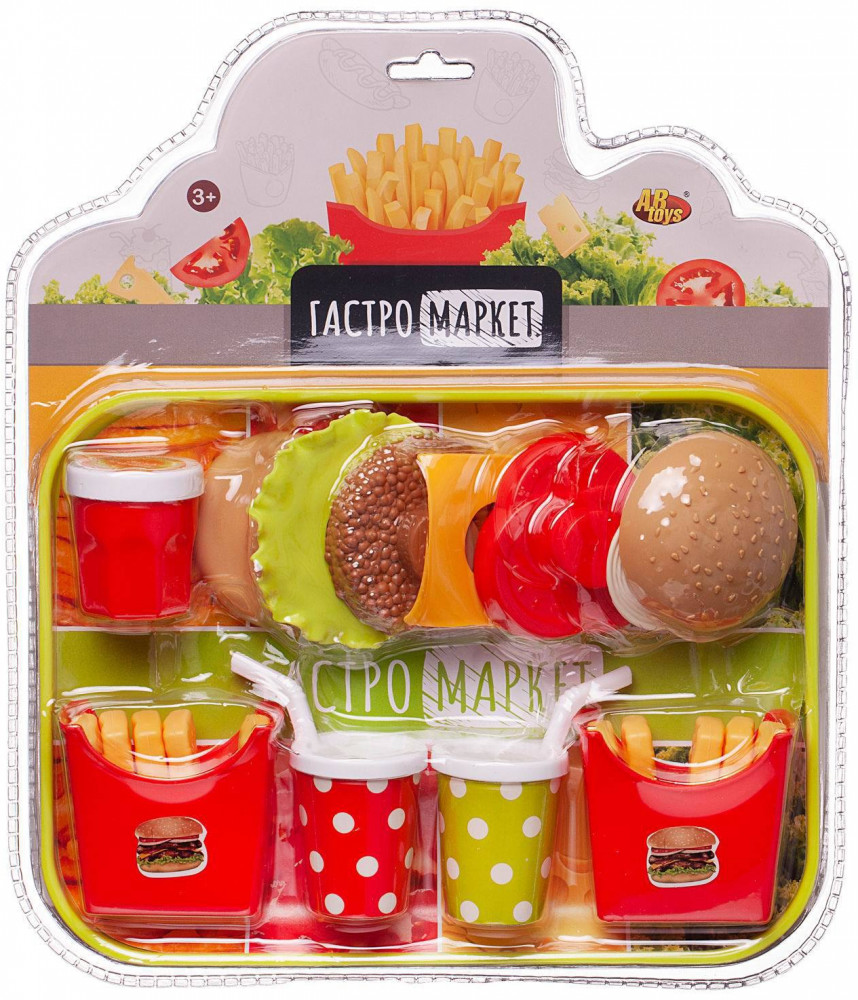 Набор «Гастромаркет» от бренда Abtoys включает продукты, которые очень похожи на так любимые всеми детьми угощения из ресторанов быстрого питания. В составе бутерброд, сэндвич, картошка фри и другие продукты, которые выглядят весьма реалистично. Бутерброд можно разбирать и снова собирать. При сборке ребенок может включать в его состав любимые продукты и исключать те, которые ему не по вкусу. Таким продуктами всегда можно накормить игрушечных друзей.