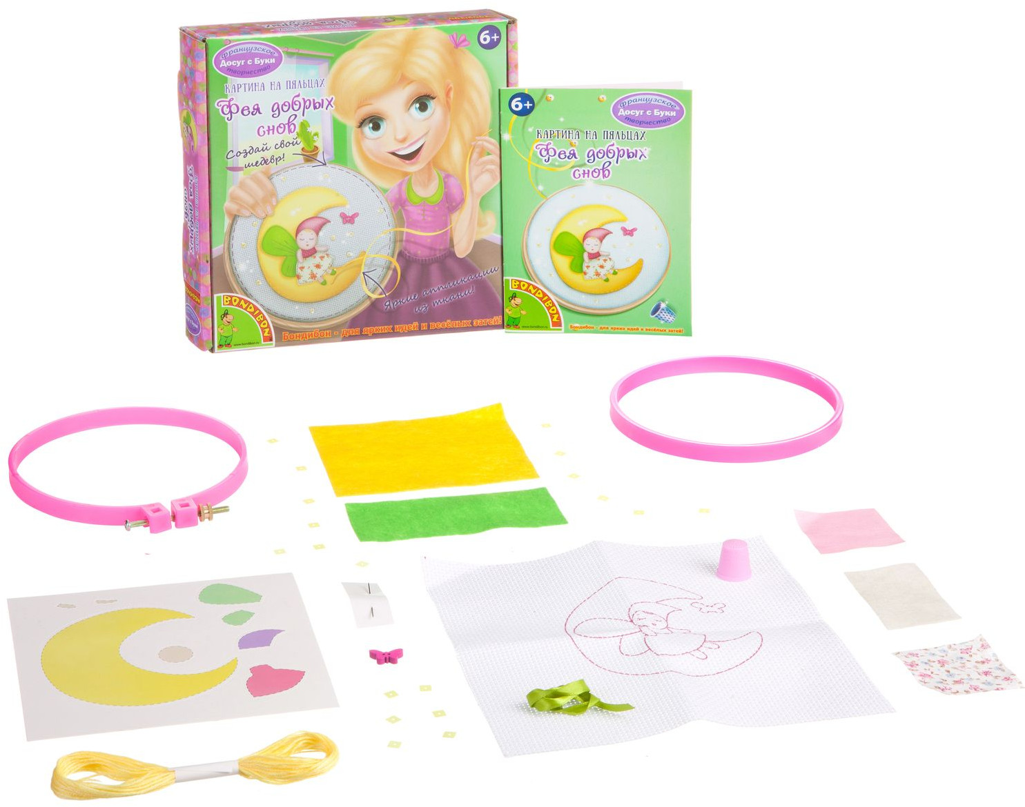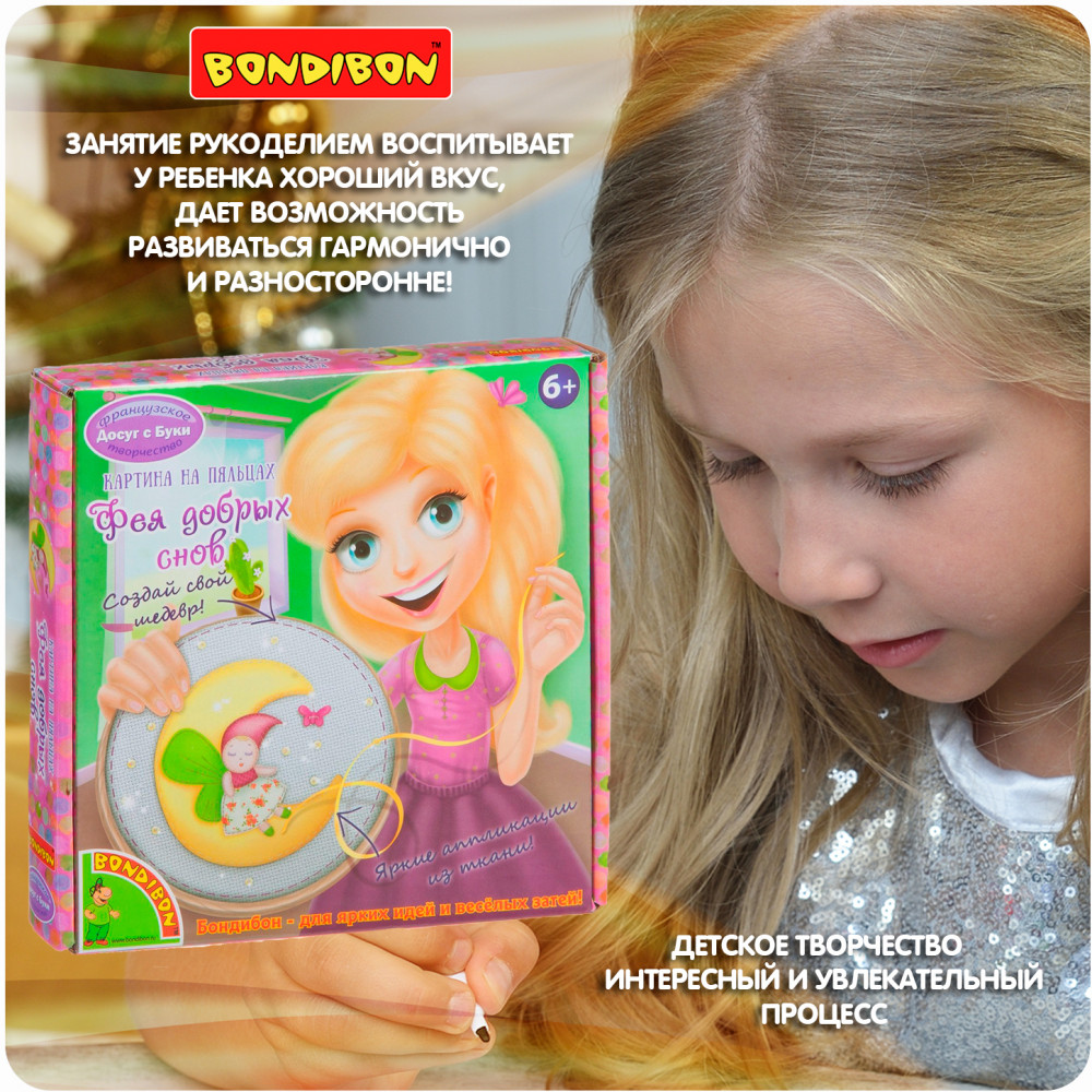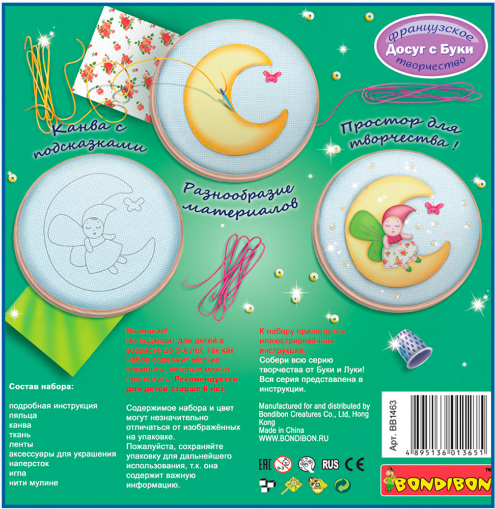 Как превратить лоскутки ткани в очаровательную картину? Просто и увлекательно! Подробная схема работы, секреты вышивки, подсказки для облегченной работы юные рукодельницы найдут в этой маленькой коробочке. В набор входит: подробная инструкция, пяльцы, канва, ткань, ленты, аксессуары для украшения, наперсток, игла, нити мулине.