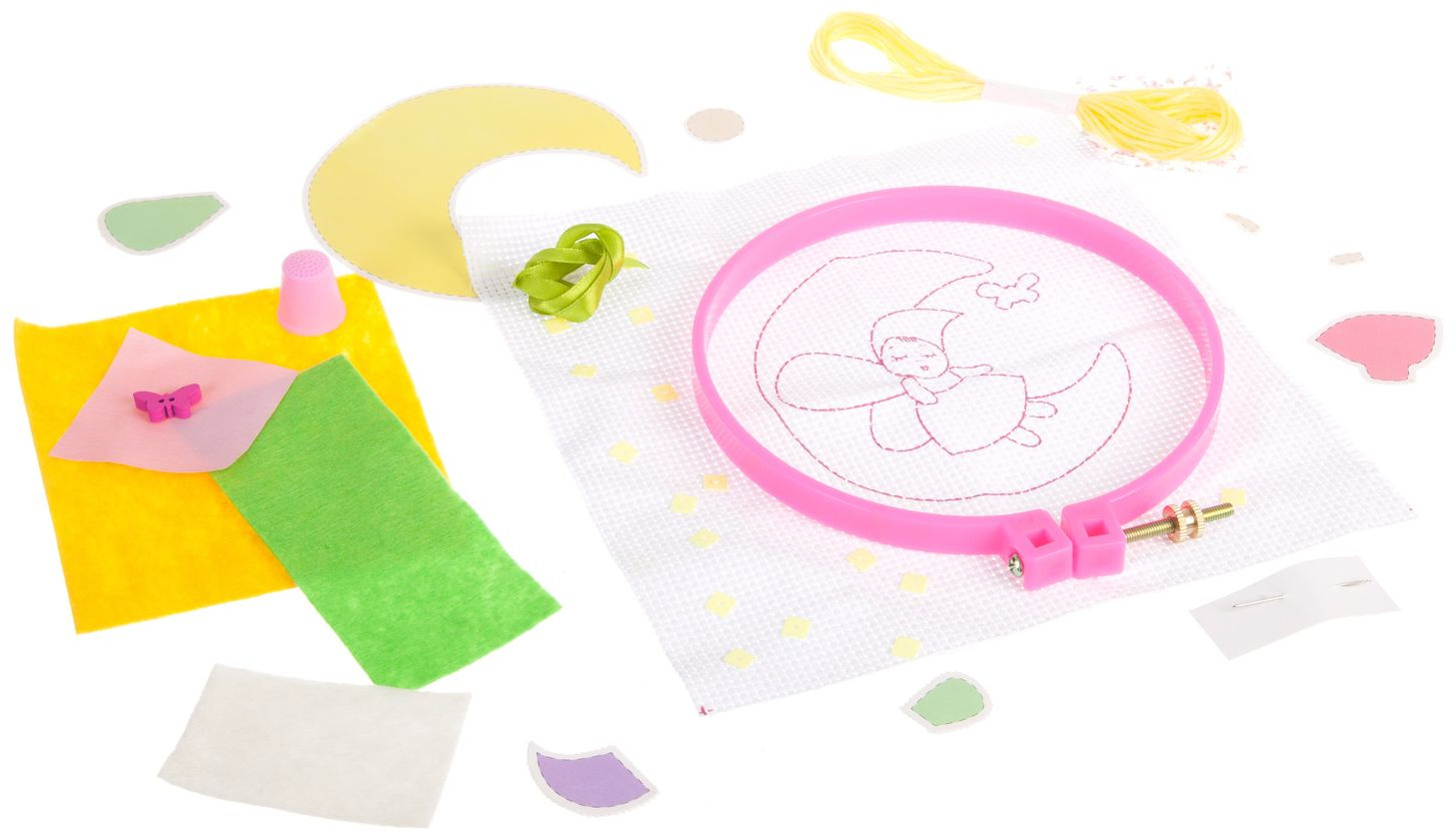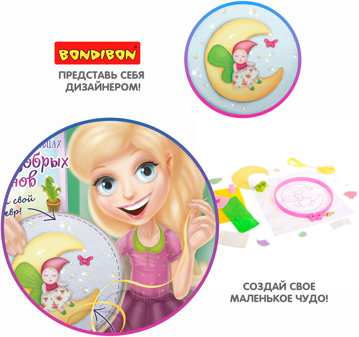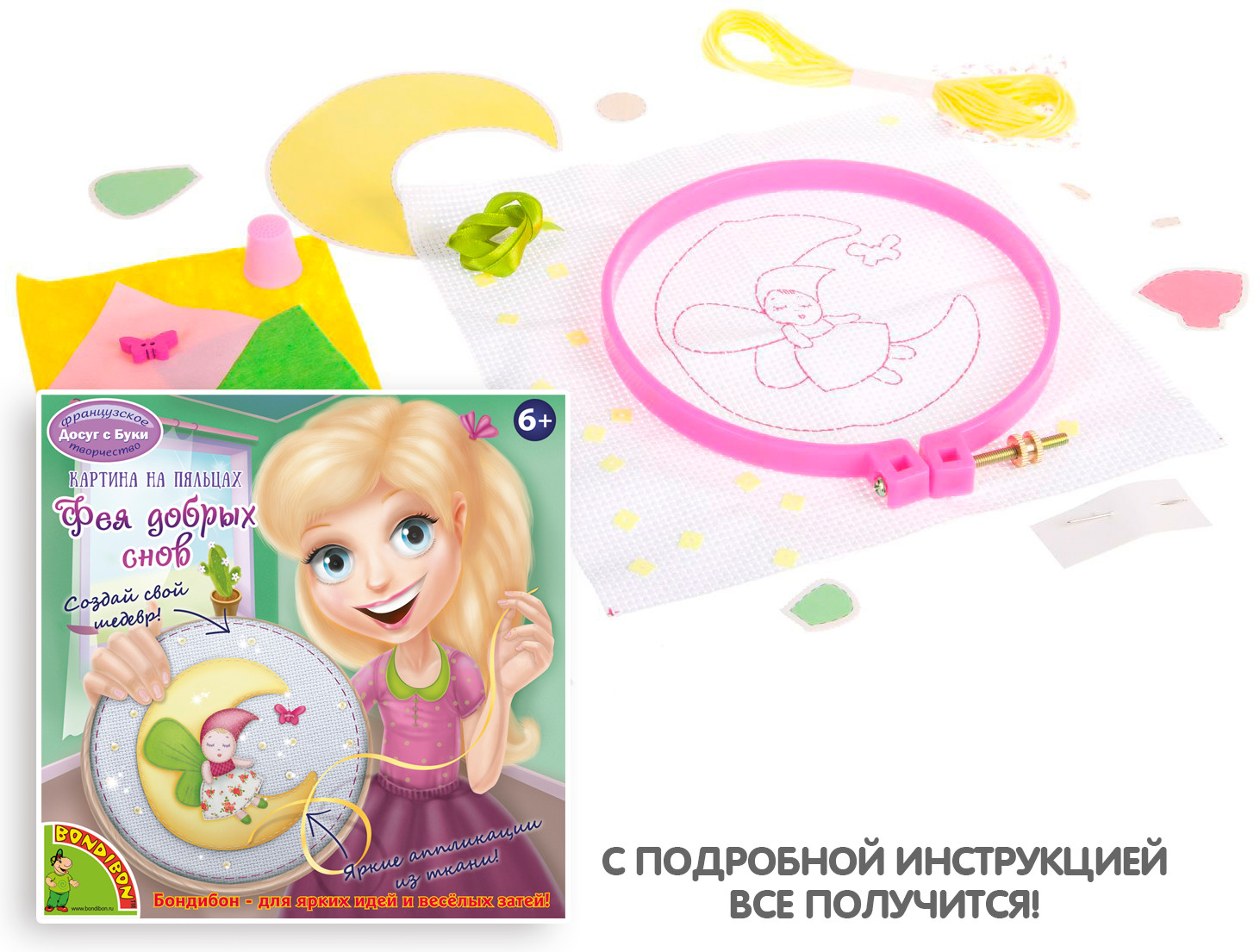 Как превратить лоскутки ткани в очаровательную картину? Просто и увлекательно! Подробная схема работы, секреты вышивки, подсказки для облегченной работы юные рукодельницы найдут в этой маленькой коробочке. В набор входит: подробная инструкция, пяльцы, канва, ткань, ленты, аксессуары для украшения, наперсток, игла, нити мулине.