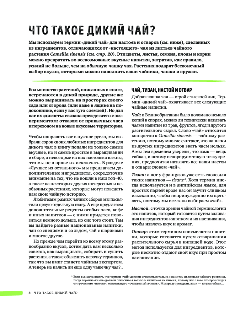 Дикий чай. Новые вкусовые территорииВ данный момент этот товар отсутствует в продаже. Возможно, у нас найдется аналогичный или похожий товар здесь. Серия: Кофе и чай. Магия напитка В этой книге используется термин «дикий чай» для настоев и отваров, сделанных из ингредиентов, отличающихся от «настоящего» чая из листьев чайного растения. Эти цветы, листья, семена, плоды и корни можно превратить во всевозможные вкусные напитки, затратив, как правило, усилий не больше, чем на обычную чашку чая. |