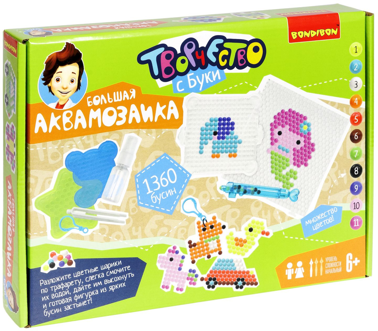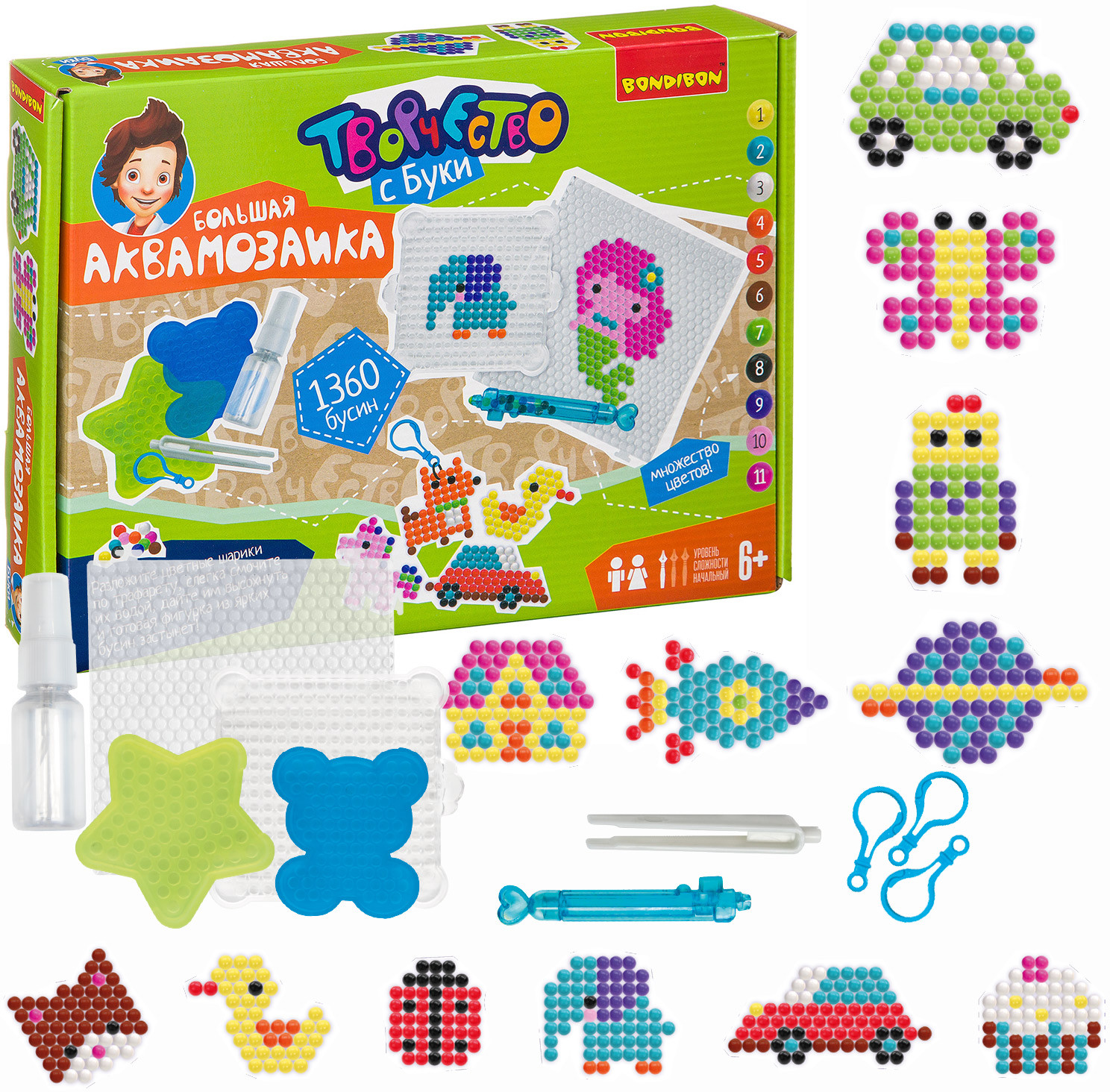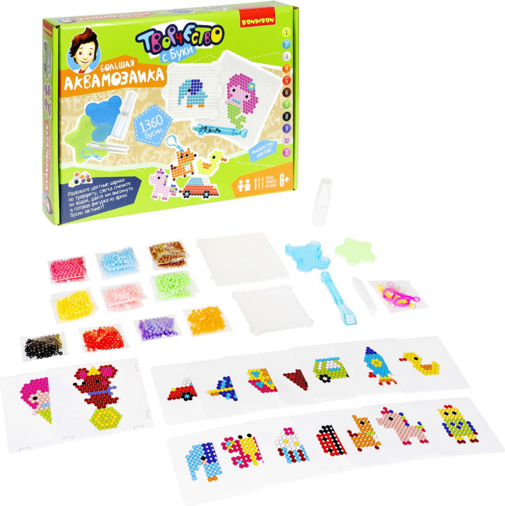 Bondibon Аквамозаика большаяВ данный момент этот товар отсутствует в продаже. Возможно, у нас найдется аналогичный или похожий товар здесь. Серия: Творчество с Буки Попробуйте и оцените новый вид творчества — аквамозаика! Всё, что нужно сделать — выложить по трафарету желаемую фигурку персонажа, после слегка смочить водой детали, подождать... И поделка готова! В этом наборе как никогда много бусин, а значит, много простора для фантазии! Ведь фигурки можно выкладывать не только по разнообразным трафаретам из набора, но и попробовать создать что-то самому! |