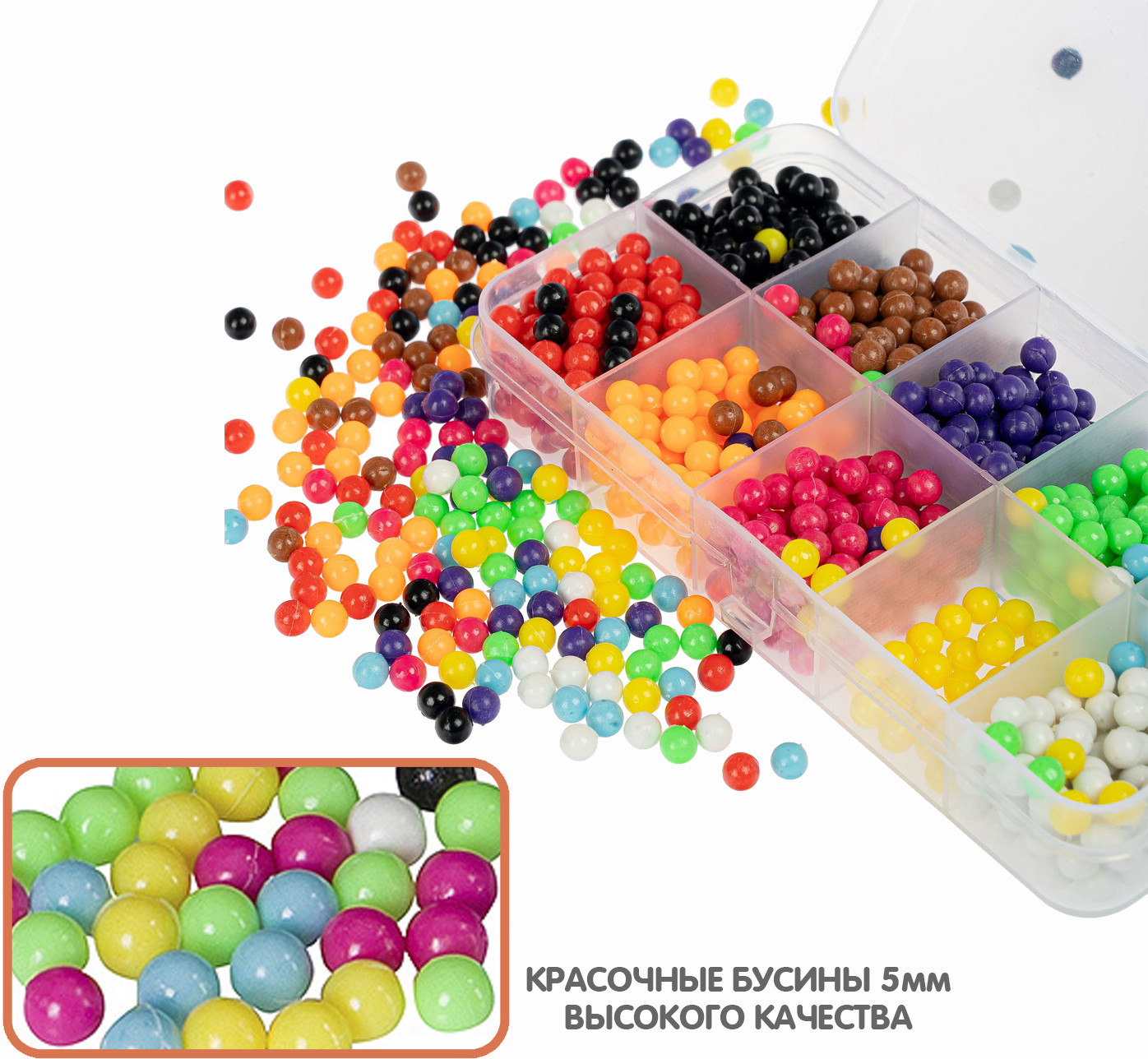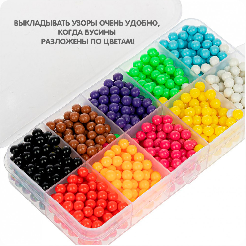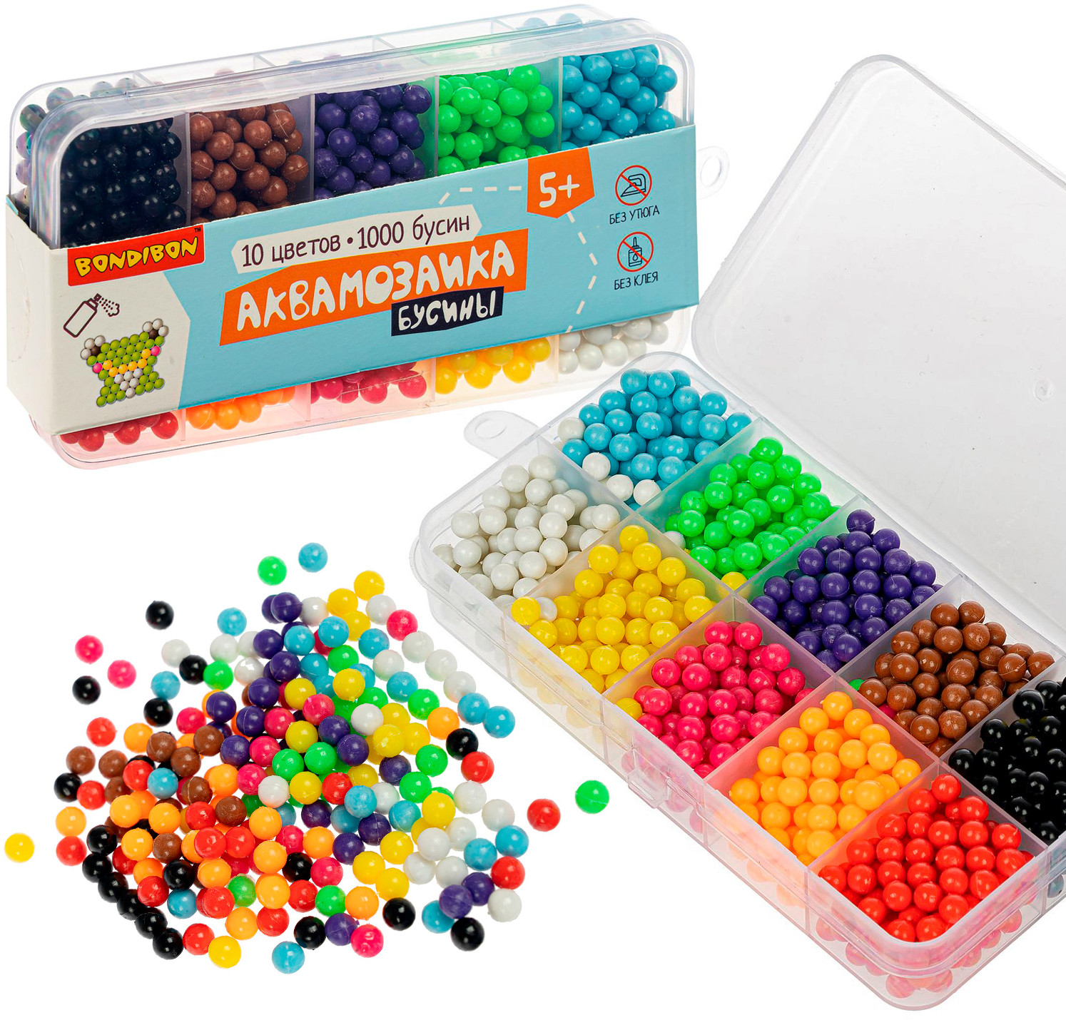 В комплекте 1000 бусин 10-ти ярких цветов в удобном компактном пластиковом боксе — отличное дополнение к наборам аквамозаики от «Bondibon»! В таком боксе бусины для создания поделок из аквамозаики удобно брать с собой к подружкам, чтобы создавать игрушки, брелоки и подвески вместе
