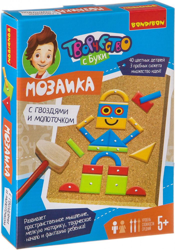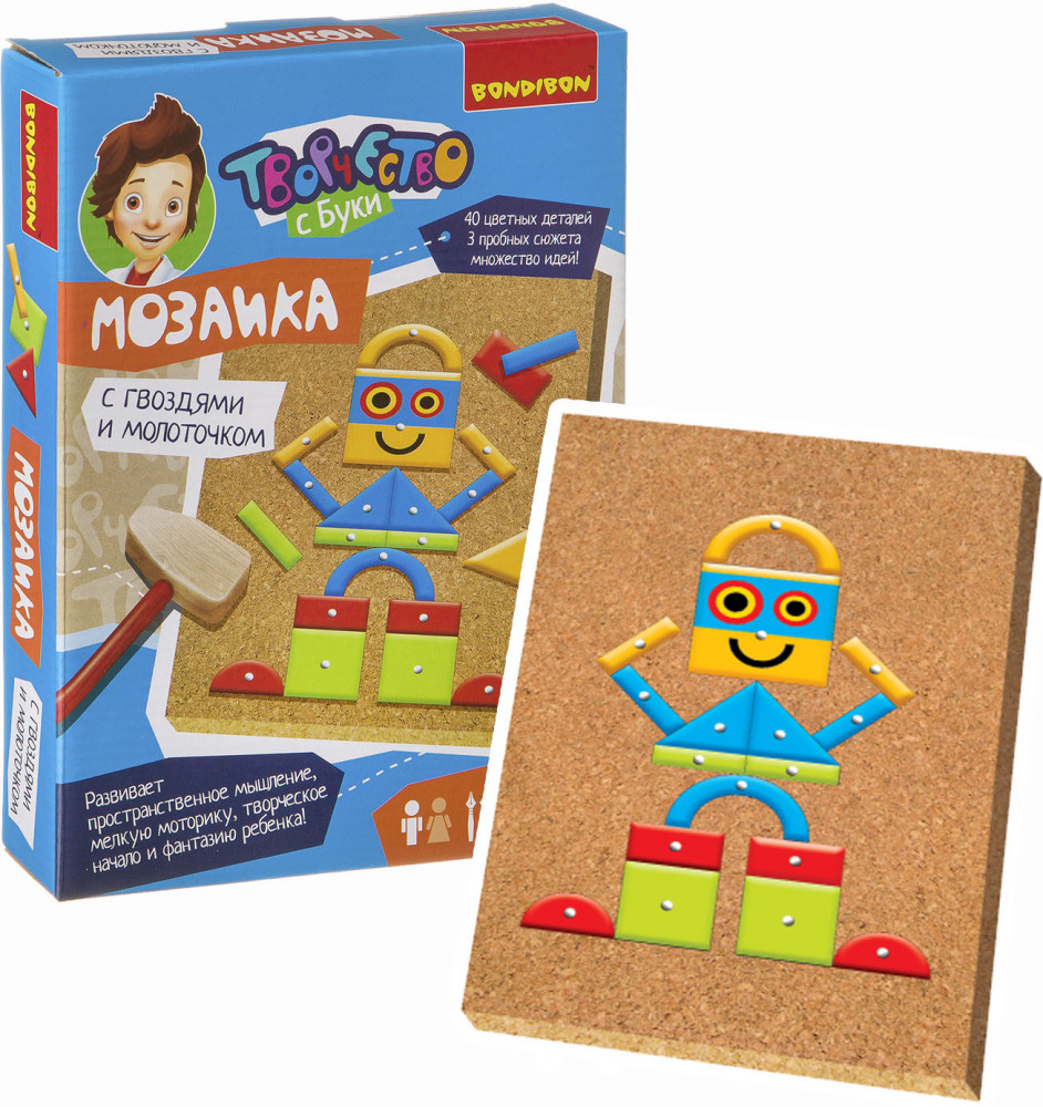 Увлекательная игра по созданию картинок из деталей, прикрепляемых к основе с помощью гвоздиков. Чтобы прикрепить деталь к основе, нужно аккуратно вставить в нее гвоздик и прибить его молоточком. Особых усилий не требуется, детали и пробковая основа мягкие, поэтому гвоздики легко входят в них. Также легко разобрать созданные картинки. Игра отлично тренирует мелкую моторику рук и глазомер ребенка, воображение и фантазию. Гвоздики в игре маленькие и достаточно острые, поэтому, если Вы предложите игру маленькому ребенку нужно чтобы он постоянно находился под Вашим контролем.