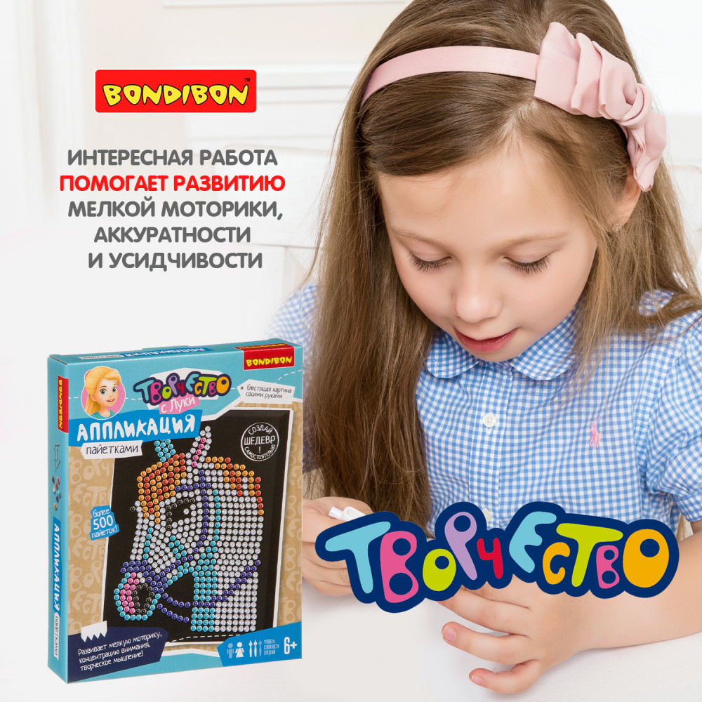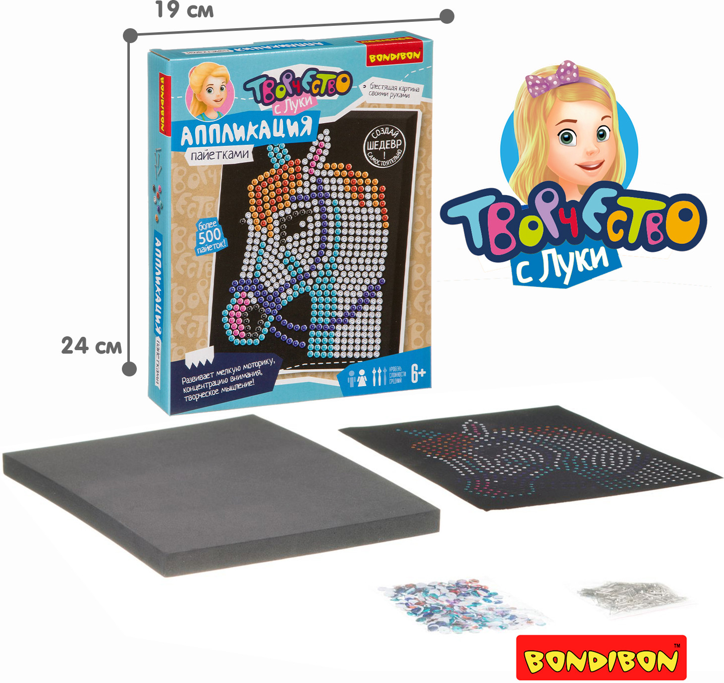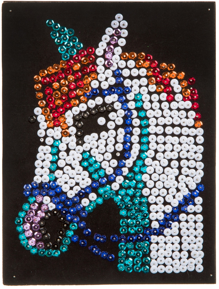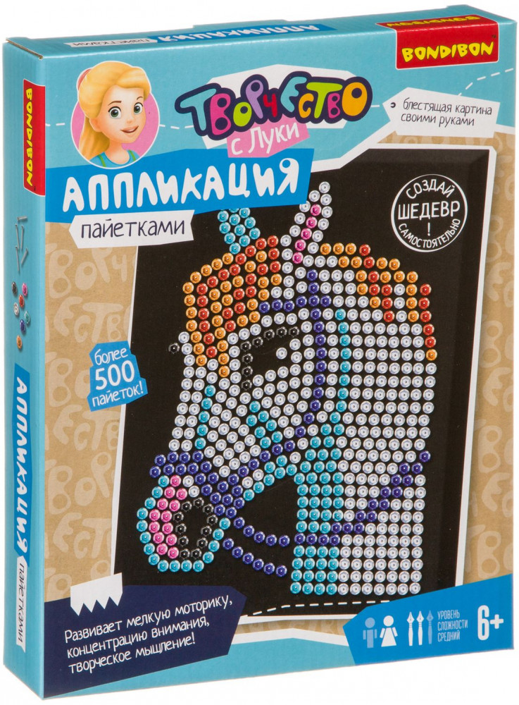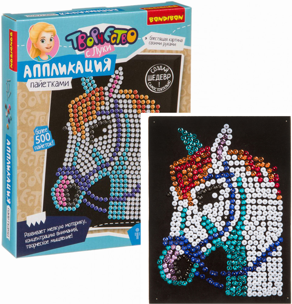 Аппликация из пайеток — увлекательный и завораживающе красивый вид творчества. Работа с этим набором поможет развить мелкую моторику, концентрацию внимания и творческое мышление. По итогу Вы получите очень красивую картину с изображением головы лошади, а также море хорошего настроения и творческого вдохновения!