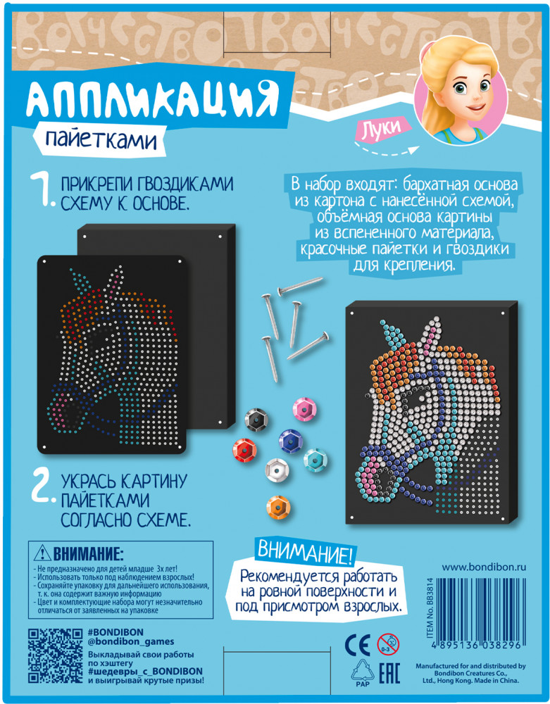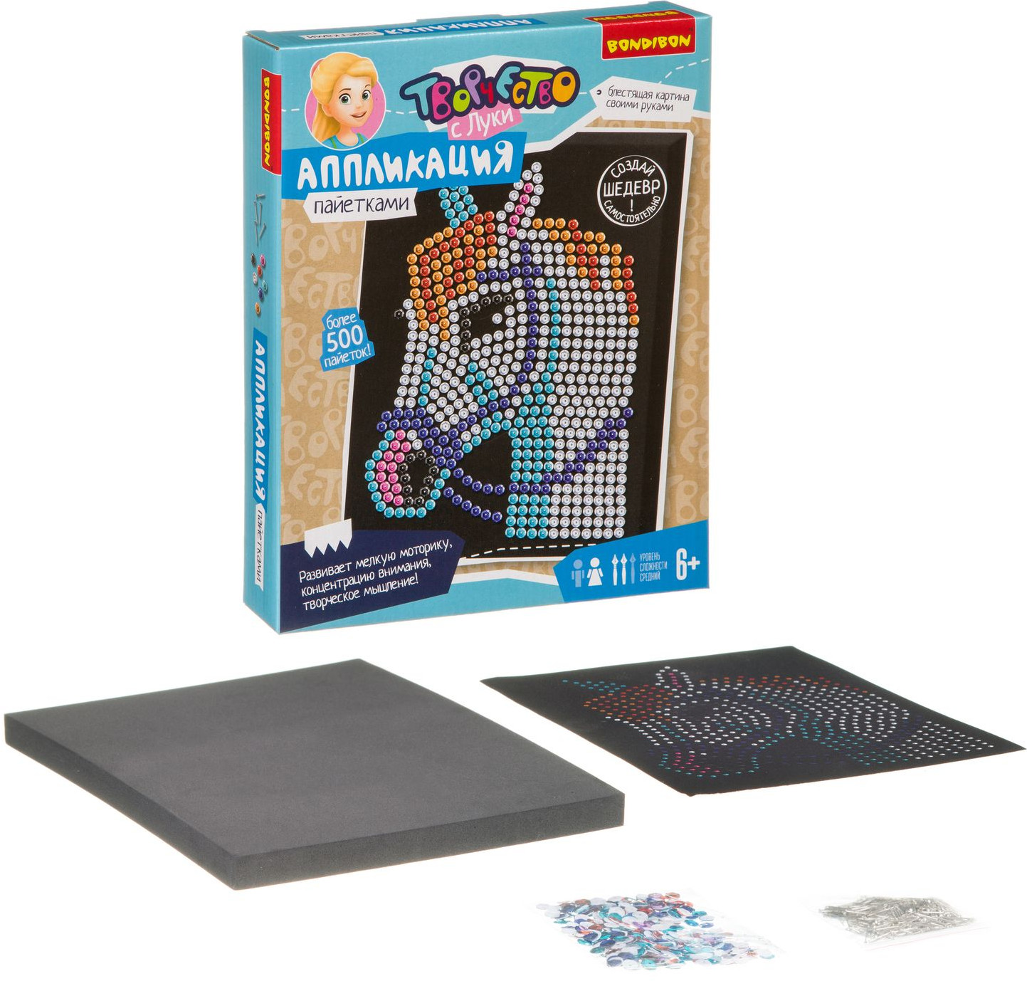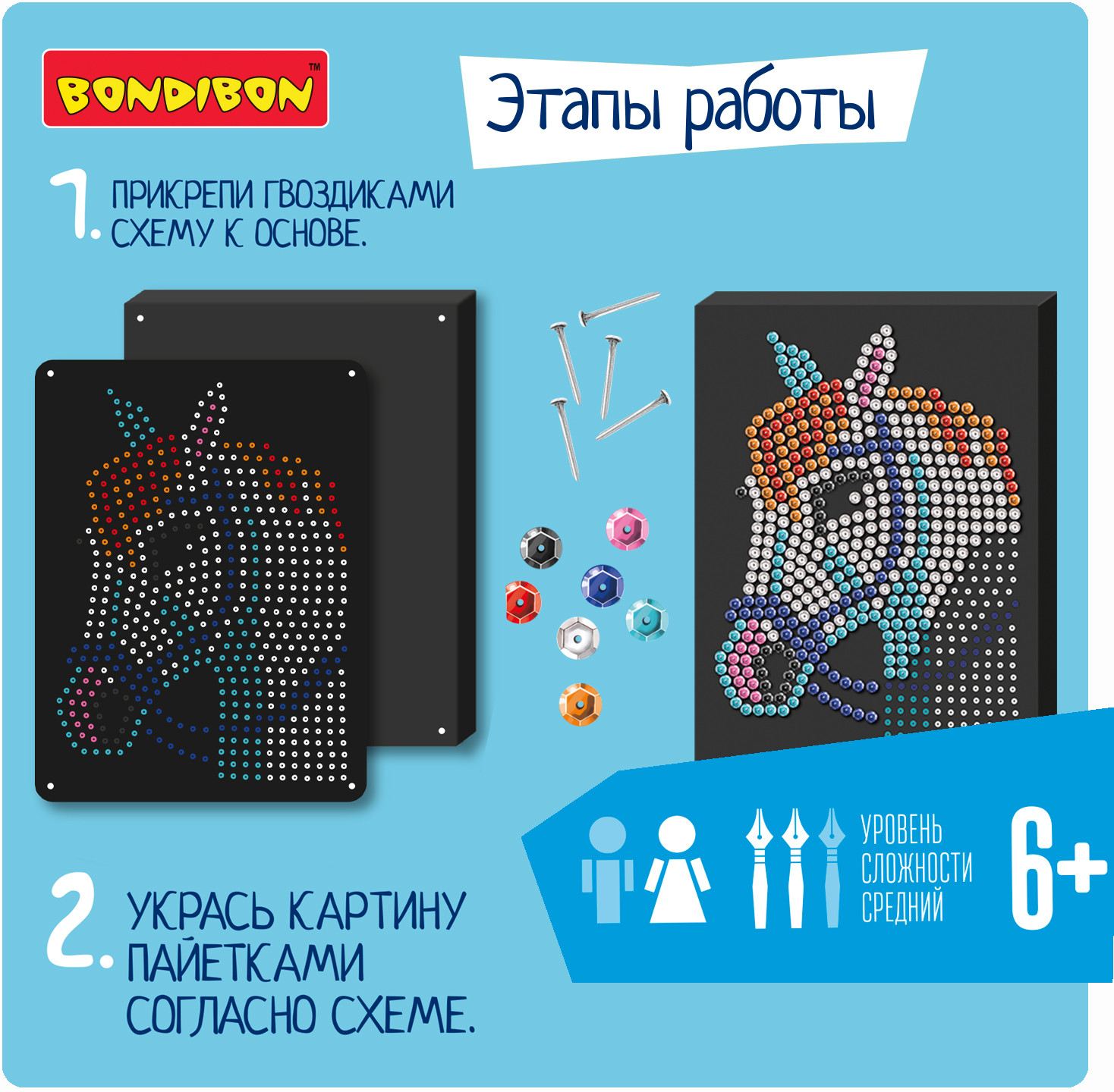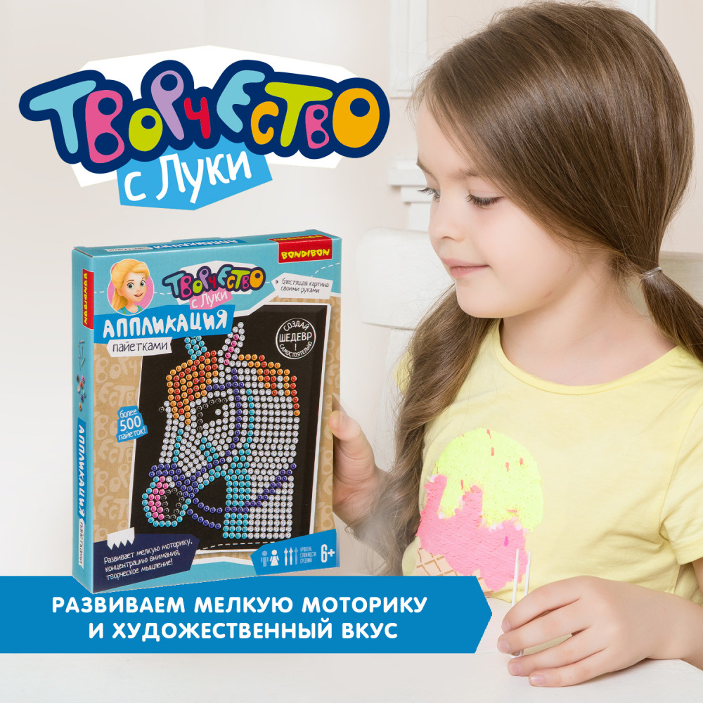 Аппликация из пайеток — увлекательный и завораживающе красивый вид творчества. Работа с этим набором поможет развить мелкую моторику, концентрацию внимания и творческое мышление. По итогу Вы получите очень красивую картину с изображением головы лошади, а также море хорошего настроения и творческого вдохновения!