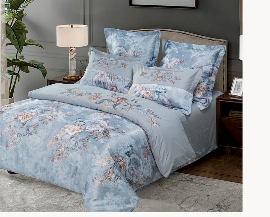 Комплект красивый, качество материала великолепное, но цвет совсем не голубой, а серый.