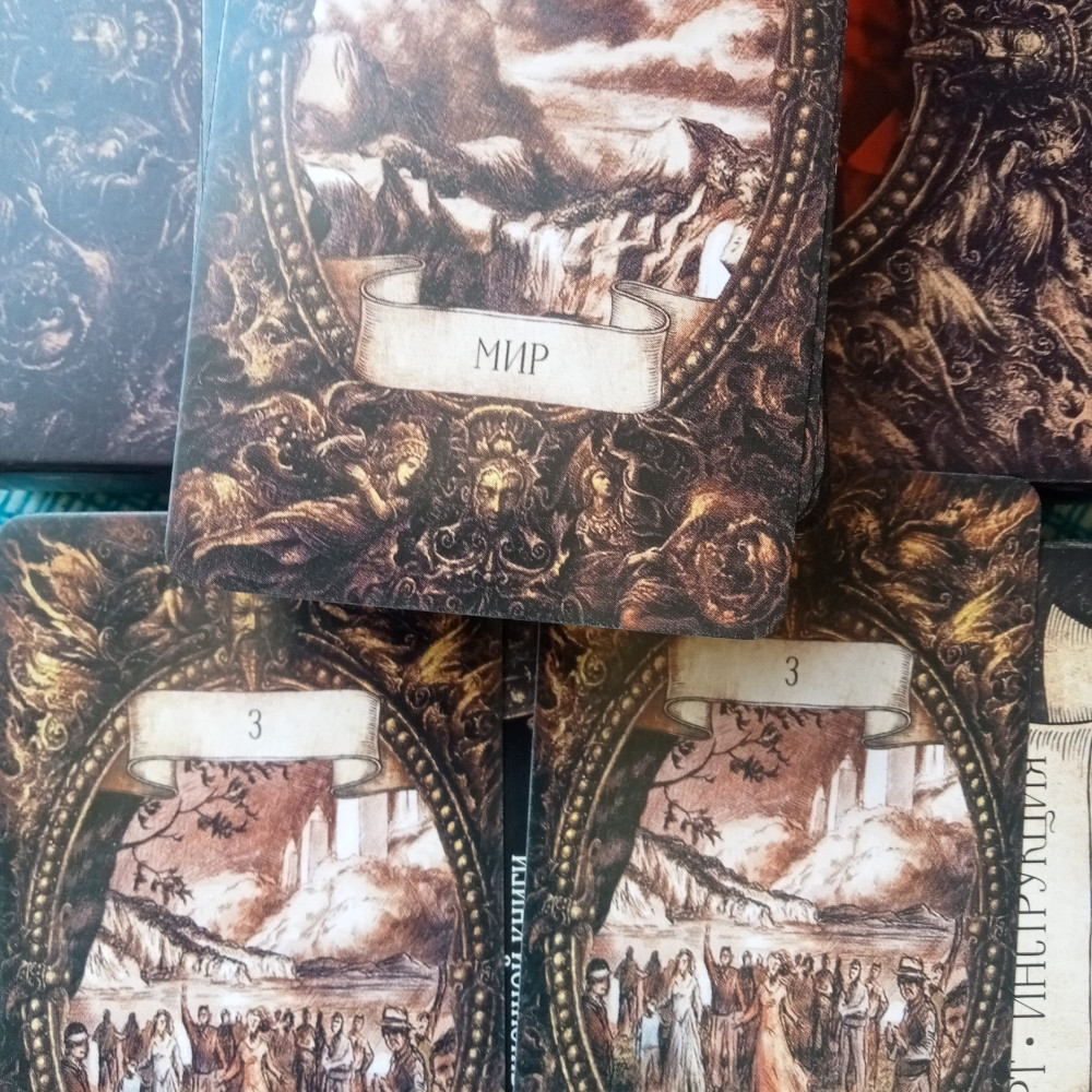 Вместо 5 чаш - две тройки чаш. Разочарована . Буду заказывать " Черный Гримуар" .