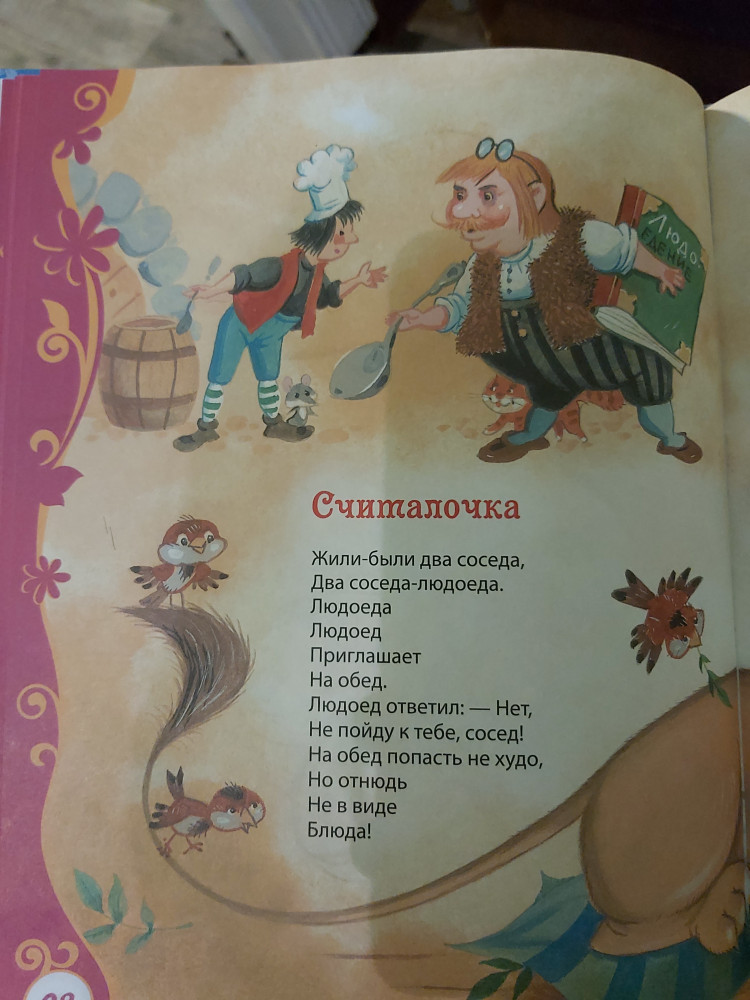 Полностью соглашусь с озвученными отзывами. Книга действительно стоит того, чтобы иметь ее на полке. Красочные иллюстрации, хорошая печать. Ребенку очень понравилась, сама учит всякие считалочки и стишки, что не было с другими книгами. В общем очень советую!