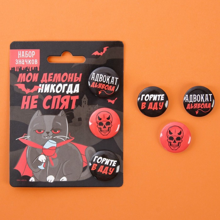 Набор значков закатных «Адвокат дьявола»В данный момент этот товар отсутствует в продаже. Возможно, у нас найдется аналогичный или похожий товар здесь. Значок металлический легкий, долговечный, не боится влаги и механических повреждений, безопасно крепится к одежде и аксессуарам, что позволяет использовать его без ограничений для всех возрастных категорий. Такой значок — брошь отлично украсит одежду, рюкзак, сумку, шапку, шарф и дополнит любой ваш образ на «Хэллоуин». Значок отличный подарок на любой праздник. |