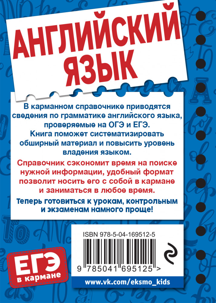 В данный момент этот товар отсутствует в продаже. Возможно, у нас найдется аналогичный или похожий товар здесь. Серия: ЕГЭ в кармане (на спирали) В карманном справочнике систематизированы основные теоретические сведения по грамматике английского языка.