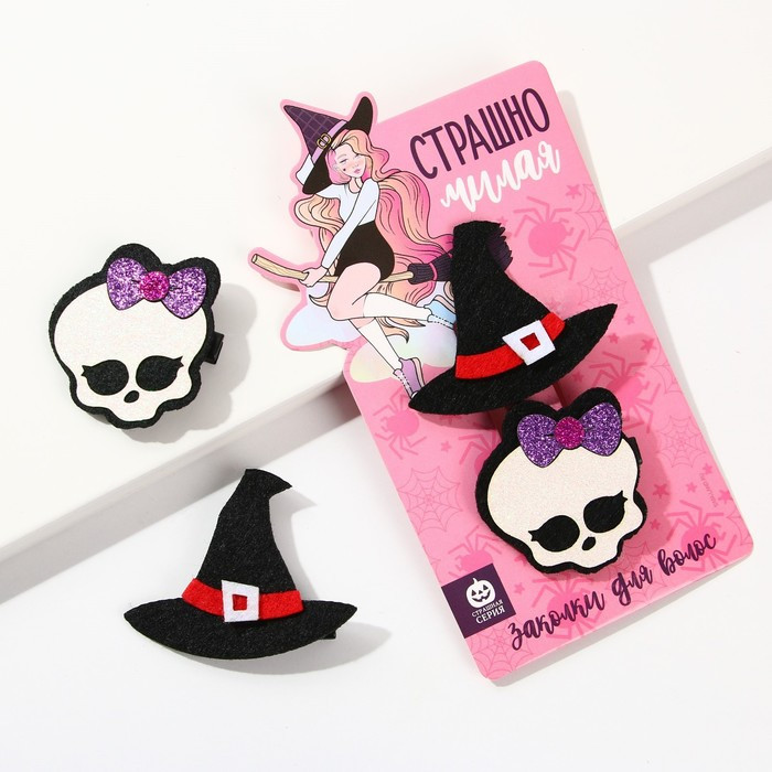 Art beauty Набор заколок для волос «Страшно милая»В данный момент этот товар отсутствует в продаже. Возможно, у нас найдется аналогичный или похожий товар здесь. Серия: Хэллоуин Набор заколок станет прекрасным дополнением для волос к повседневному или праздничному образу. Набор с аксессуарами для волос, который придется по вкусу вашей дочке, подруге или внучке, будет приятным презентом на Хэллоуин или другой праздник. Размер черепа — 5 × 5 × 1,5 см, размер шляпки — 5,5 × 4,5 × 1,5 см. |