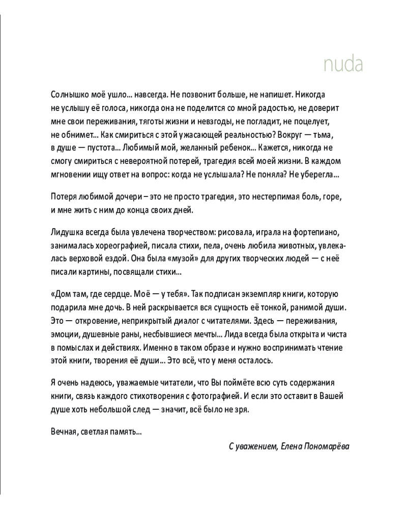 | Nuda. Стихотворения Лидии Пономаревой Лидия Борисовна Пономарева