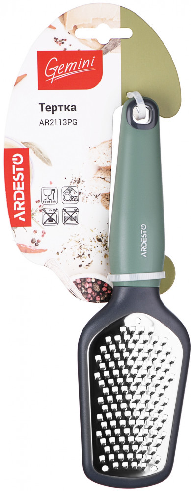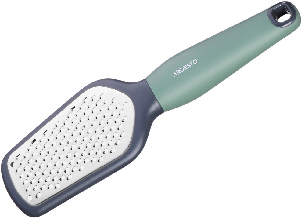 Основная часть терки сделана с нержавеющей стали и нейлона, а покрытие ручки с прорезиненного пластика. Принадлежность из нейлона можно использовать с посудой из антипригарным покрытием.