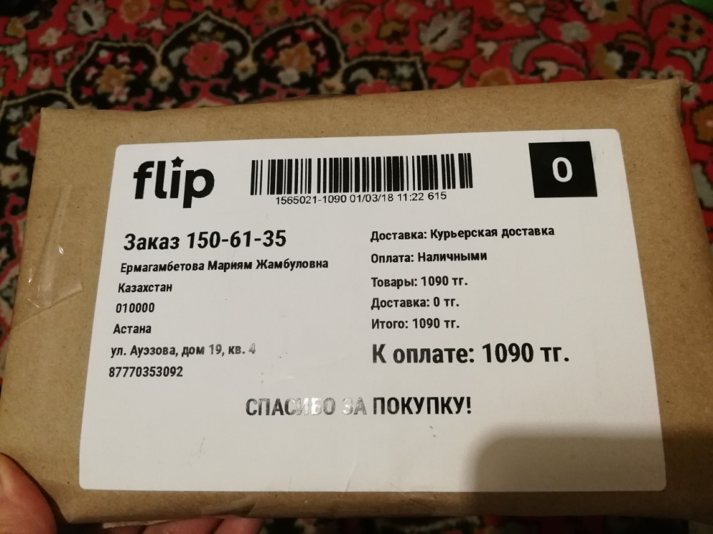 Спасибо вам, flip.kz. Я очень вам благодарен. Сервис отличный, все так оперативно, без опоздания. Все классно. Спасибо.