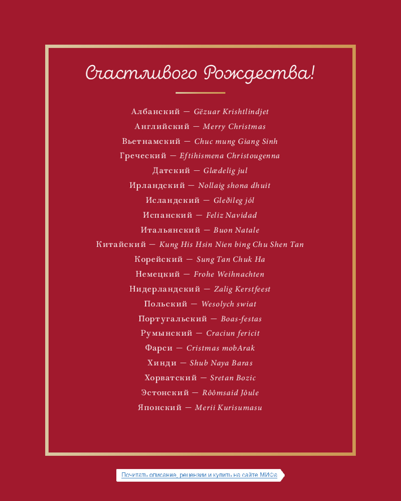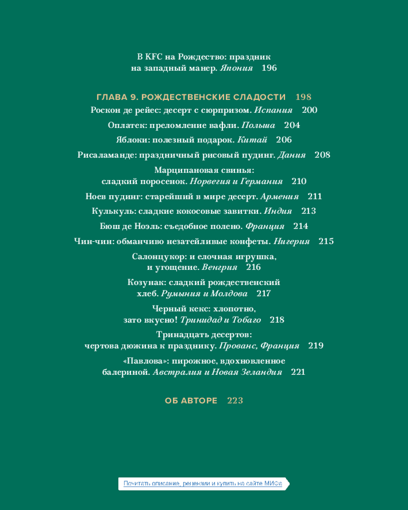 Новогодний атлас. Самые веселые, вкусные (и даже страшные) праздничные традиции 55 странВ данный момент этот товар отсутствует в продаже. Возможно, у нас найдется аналогичный или похожий товар здесь. Знаете ли вы, что в Гватемале череда зимних праздников открывается ритуалом сожжения дьявола, а участники народных гуляний поджигают дьявольские пиньяты? Слышали о Йольском козле, скандалисте и хулигане, вымогающем подарки у шведов? Или что классическим рождественским ужином в Японии считается ведёрко жареной курицы из KFC? |