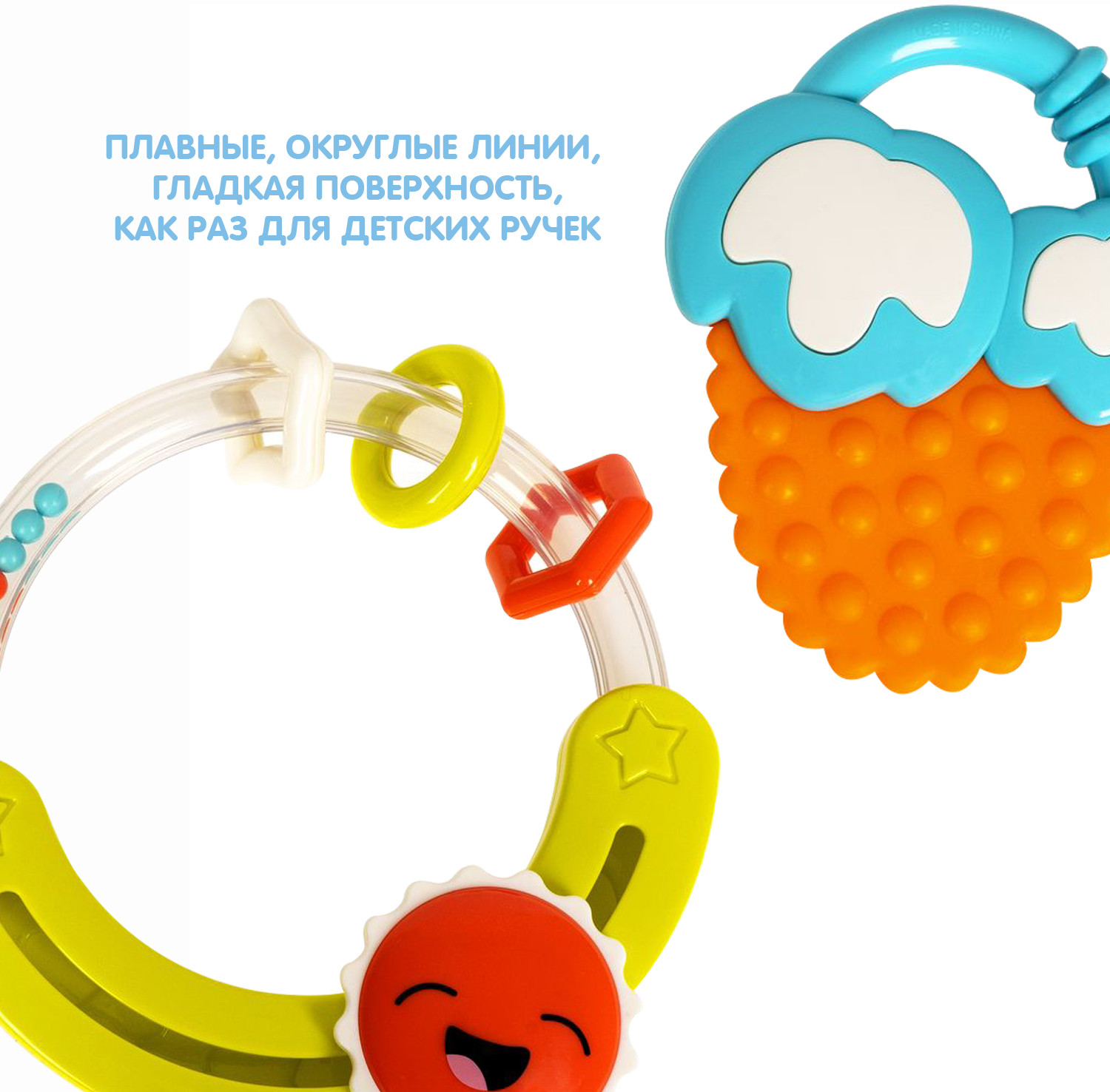 Bondibon Набор погремушек-прорезывателей «Колечко с солнцем, ягодка»В данный момент этот товар отсутствует в продаже. Возможно, у нас найдется аналогичный или похожий товар здесь. Серия: Baby You Набор погремушек с прорезывателями Baby You Bondibon — отличный способ увлечь малыша и начать его развитие. Такие игрушки тренируют мелкую моторику, концентрацию внимания рук, слуховое и зрительное восприятие, пространственное мышление и тактильные ощущения. Двигая руками, ребенок будет слышать шум и искать его источник, а яркий цвет будет сразу привлекать внимание. |