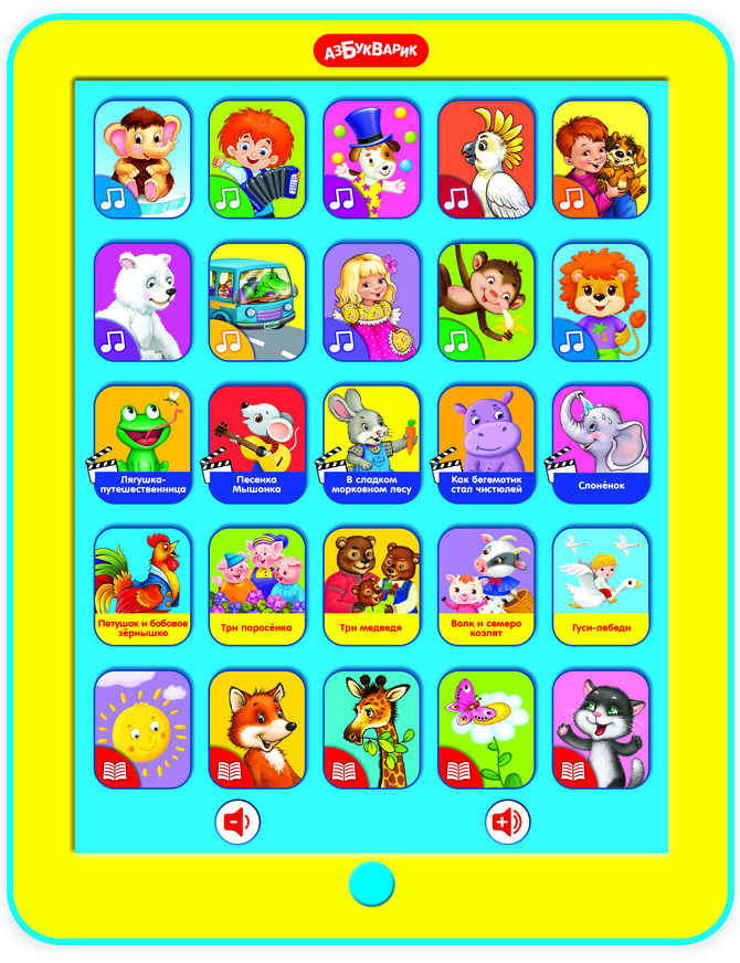 💳 Оплатить за товар можно при получении 🇰🇿 Есть бесплатная доставка по Казахстану от 1 дня 🎁 Копите бонусы с каждой покупки Этот планшетик надолго займёт внимание малыша! Ведь в нём есть 30 песенок, стихов и сказок. Здесь и добрые мультики, и весёлые песенки, и любимые сказки, и забавные стишки. Малыш сможет спеть с Антошкой и Мамонтёнком, послушать сказки про трех медведей, трех поросят, волка и семеро козлят, выучить стихи про зверят. |
