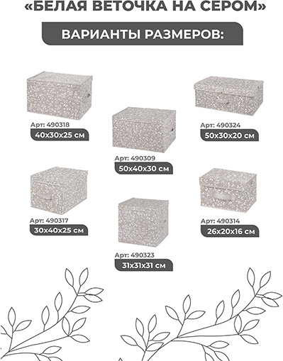 El Casa Короб для храненияВ данный момент этот товар отсутствует в продаже. Возможно, у нас найдется аналогичный или похожий товар здесь. Серия: Белая веточка на сером Короб складной с крышкой поможет организовать хранение в самых разных помещениях: в прихожей, гостиной, спальне, детской и любых других комнатах. Такие кофры эстетично выглядят. Их можно разместить не только в шкафу, но и на открытых полках. Помогут организовать систему хранения самых разных вещей в едином стиле, будь то игрушки, одежда, канцелярия, косметика, нижнее белье, носки, рукоделие или другие мелочи. Органайзер выполнен из нетканого материала и имеет плотные картонные вставки. Имеет ручки, чтобы коробку было удобно переносить и выдвигать как ящик. Такой контейнер станет удобным дополнением дома и поможет эффективно использовать каждый сантиметр пространства. |