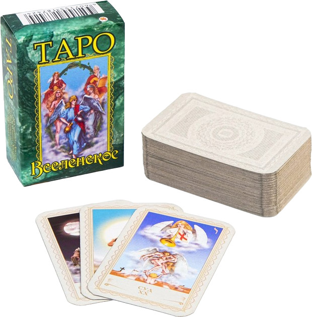 Карты гадальные «Таро Вселенское»В данный момент этот товар отсутствует в продаже. Возможно, у нас найдется аналогичный или похожий товар здесь. Карты Таро — система символов, колода из 78 карт, появившаяся в Средневековье в XIV-XVI веке, в наши дни используется преимущественно для гадания. Изображения на картах Таро имеют сложное истолкование с точки зрения астрологии, оккультизма и алхимии, поэтому традиционно Таро связывается с «тайным знанием» и считается загадочным. Двадцать два Старших Аркана — это двадцать два отдельных сюжета, из которых ни один не повторяет другого, а будучи разложены по номерам, они складываются в четкую логическую последовательность. Младшие Арканы состоят из четырех серий или мастей — Жезлов, Мечей, Кубков и Денариев, позже ставших трефами, пиками, червами и бубнами. Каждая масть, как и в игральных картах, начинается с Туза, за которым следуют Двойка, Тройка и так далее до Десятки. Есть еще фигурные карты или картинки — Король, Королева, Рыцарь и Паж — на одну больше, чем в игральных. |
