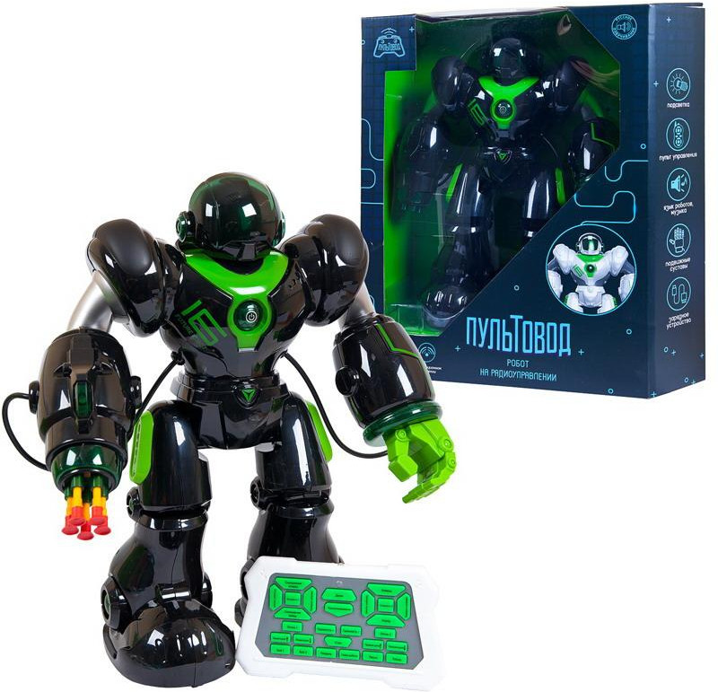 Junfa Toys Робот на радиоуправлении «Пультовод»В данный момент этот товар отсутствует в продаже. Возможно, у нас найдется аналогичный или похожий товар здесь. Радиоуправляемый робот «Пультовод» — замечательный подарок для любого ребёнка. Теперь ему никогда не будет скучно, ведь он получит не просто игрушку, но и друга. Управление этим многофункциональным роботом осуществляется при помощи пульта дистанционного управления. Он полностью русифицирован, но знает и язык роботов. У робота подвижные руки и ноги, динамичная световая подсветка на голове. Он может двигаться во всех направлениях (вперед, назад, вправо и влево), ходить или скользить. В правую руку робота встроена ракетная установка, которая выпускает стрелы по команде. Робот умеет танцевать, исполняет песни. Его движения можно запрограммировать, есть режим "Патрулирование". |