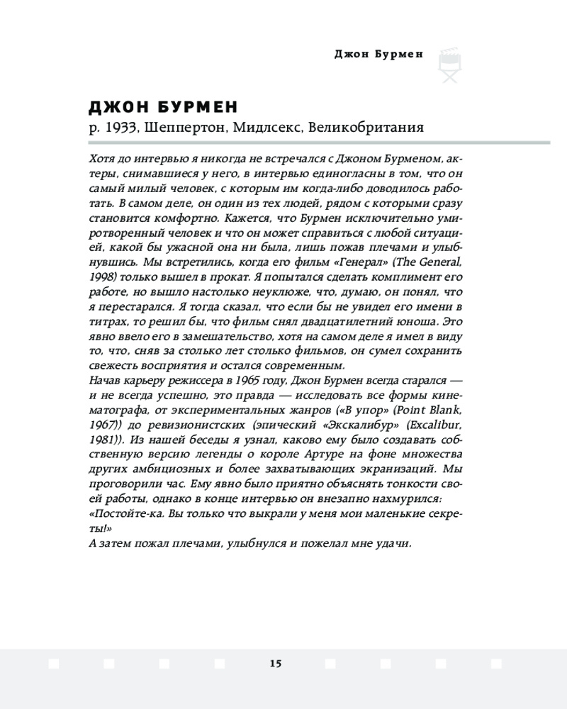 💳 Оплатить за товар можно при получении 🇰🇿 Есть бесплатная доставка по Казахстану 🎁 Копите бонусы с каждой покупки Серия: Мастерская кино. Секреты киноиндустрии Сборник интервью «Профессия режиссер. Частные уроки от великих режиссеров» — уникальная книга! Где еще могут собраться 20 живых классиков современного кино? Даже на премии «Оскар» не всегда бывает такая компания. |