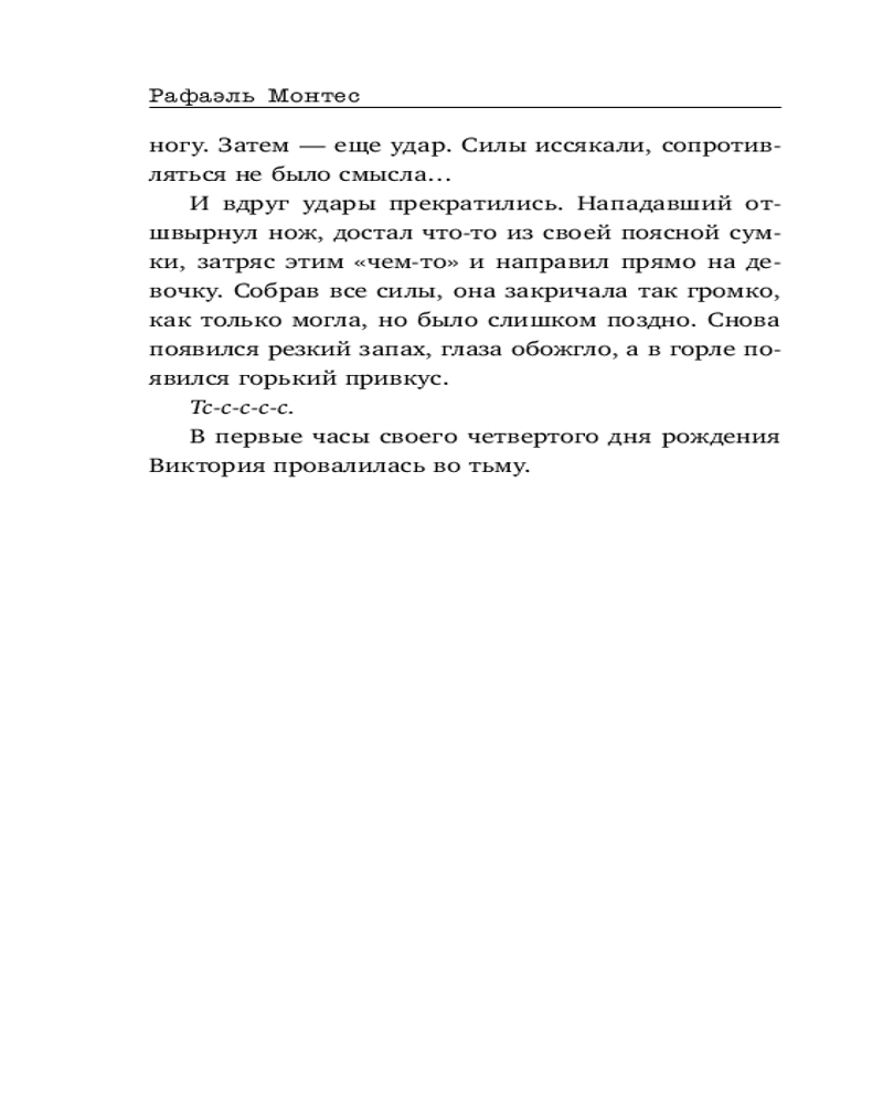 Прошлое вернулось, чтобы раскрыть секреты той трагедии и довести начатое до конца. Виктории придется сыграть по правилам психопата и самой докопаться до истины. И помочь в этом деле могут лишь три человека: ее парень, лучший друг и психиатр. Только вот есть проблема: кажется, один из них — убийца... |