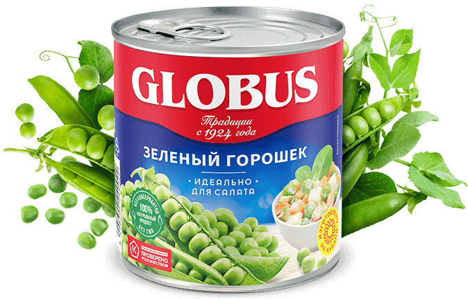 Пожалуй, ни один праздничный стол невозможно представить без знаменитого салата «Оливье», неотъемлемой частью которого является консервированный горошек. И это лишь одно, самое известное, из блюд, в состав которых входит этот продукт. Консервированный зеленый горошек Globus— эталон высочайшего качества еще со времен СССР, за ним устраивали настоящую предпраздничную «охоту» по магазинам города. И в наши дни легендарный консервированный зеленый горошек остается настоящей «визитной карточкой» бренда Globus. Его знаменитый нежный вкус и текстура остались неизменными, он все так же идеально подходит и для праздничных салатов, и для многих повседневных блюд. И это по-прежнему 100% натуральный продукт, без консервантов и искусственных добавок.