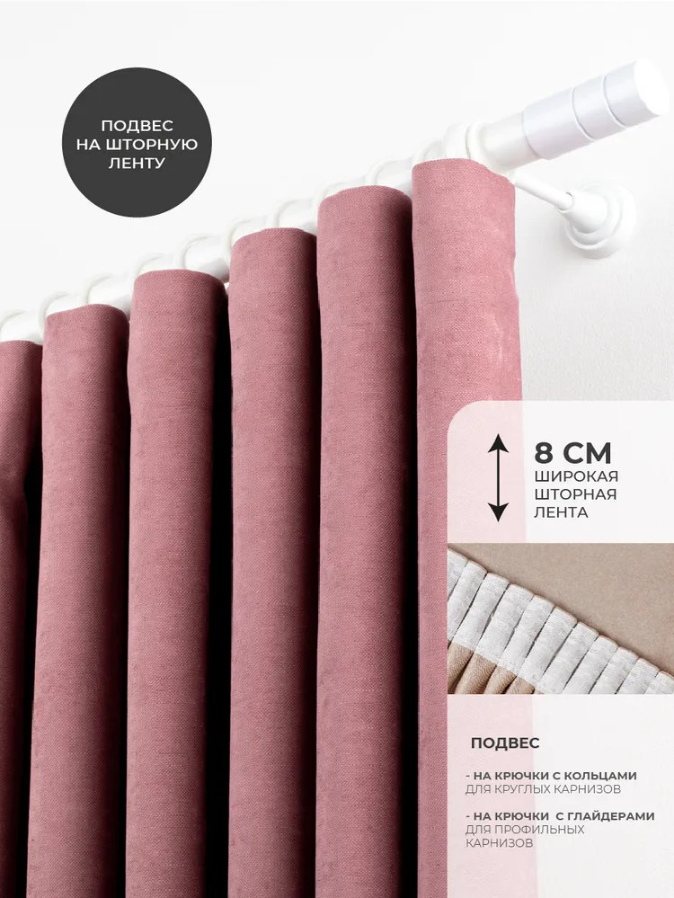 Очень хорошее качество. Лента широкая, одела крючки на нижний ряд, и штора не провисает и карниз закрыло. Ткань смотрится очень эффектно, сшита качественно.