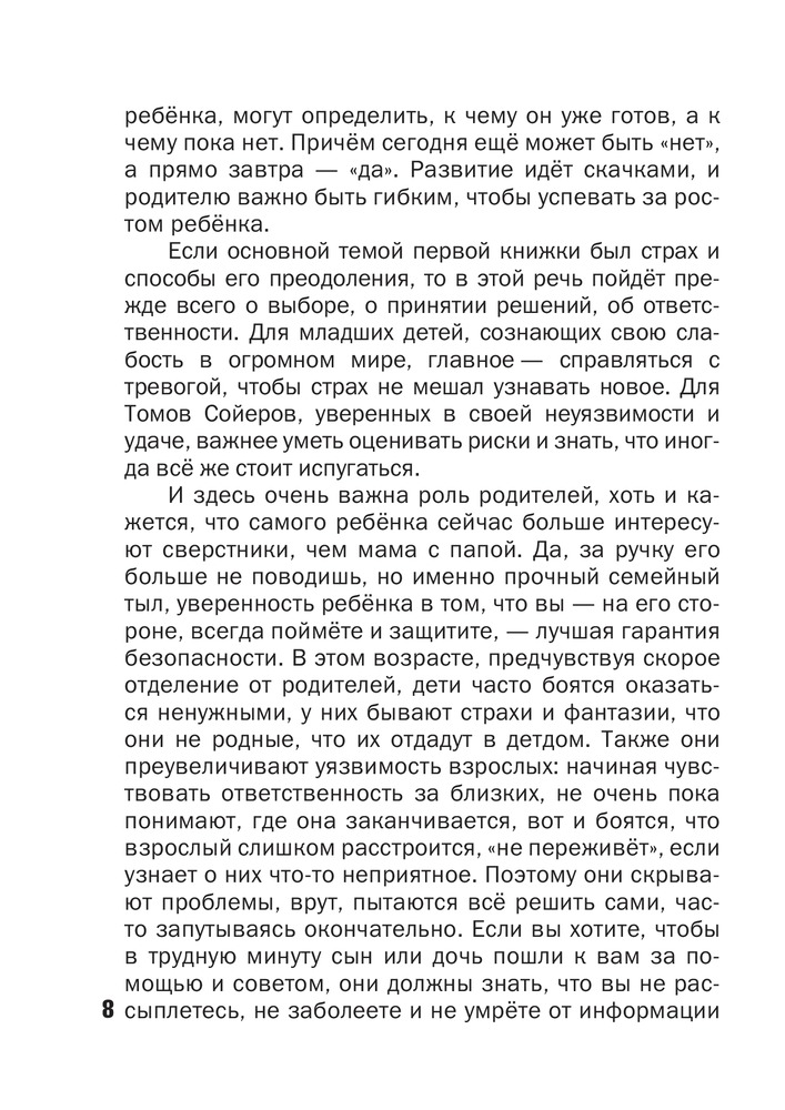Очень хорошая книга. Интересная и познавательно-полезная. Понятным языком даются объяснения непростых и иногда пугающих жизненных ситуаций. 8-летнему сыну понравилась первая часть, а как увидел, какие темы раскрываются во второй части, сразу же попросил купить и очень хочет начать читать.