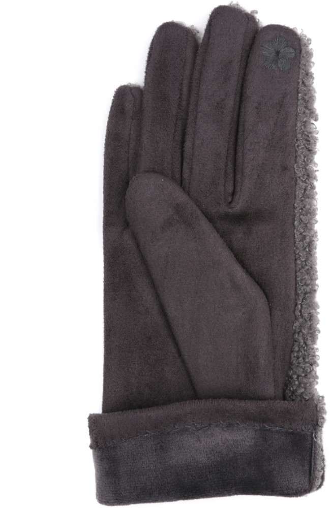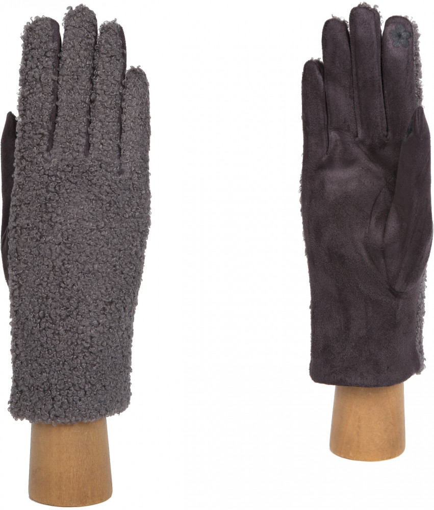 Очаровательные комбинированные перчатки «Fabretti» сочетают искусственную замшу на ладонной стороне и ткань букле — на лицевой стороне. Внутренняя сторона имеет нежную бархатистую текстуру. Перчатки снабжены функцией Touch Screen, что позволит пользоваться сенсорными устройствами, не снимая аксессуар. Обладают мягкой фактурой, хорошо сидят на руке, отлично сохраняют тепло. Будут гармонично смотреться с куртками, пуховиками и пальто. Прекрасный вариант для межсезонья и европейской зимы. Длина манжеты 6,5 см.