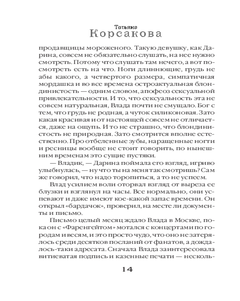 Дом у Чертова озераВ данный момент этот товар отсутствует в продаже. Возможно, у нас найдется аналогичный или похожий товар здесь. Серия: Татьяна Корсакова. Королева мистического романа. Новое оформление (обложка) Татьяна Корсакова пишет на границе смешения жанров сентиментального романа, детектива и мистики. Почитатели любовно-авантюрных историй знают ее под псевдонимом Алиса Корсак. В ее романах есть всё: настоящая дружба, первая любовь, мистика, нетривиальный сюжет. |