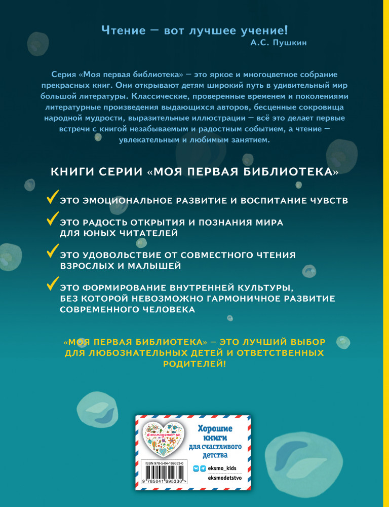 Мойдодыр. СказкиВ данный момент этот товар отсутствует в продаже. Возможно, у нас найдется аналогичный или похожий товар здесь. Серия: Моя первая библиотека Мечта всех родителей — подружить ребёнка с книгой. Ведь книги дарят маленькому читателю целый мир: заинтересовывают, развлекают, заставляют задуматься. Всеми этими качествами обладают книги новой серии «Моя первая библиотека». И они наверняка понравятся начинающим читателям с первого взгляда! |