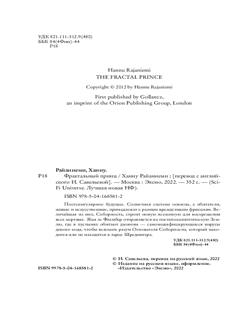 💳 Оплатить за товар можно при получении 🇰🇿 Есть бесплатная доставка по Казахстану от 1 дня 🎁 Копите бонусы с каждой покупки Серия: Fanzon. Sci-Fi Universe. Лучшая новая НФ Жан ле Фламбер сбежал из виртуальной тюрьмы, но все еще не свободен. Чтобы оплатить свой долг, он должен взломать и освободить разум живого бога. Но когда ставки сделаны, Жан должен решить, как далеко он готов зайти в этой игре, чтобы ее закончить. |